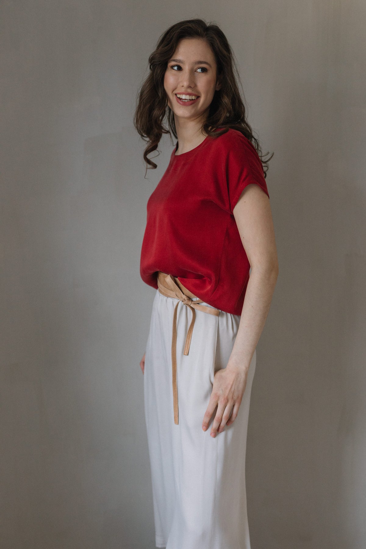 Ihana Suomessa suunniteltu ja tehty FeelK Säde Pusero! Kaunis, syvän "rakkauden punainen" väri säteilee auringon ja valon kanssa kauniisti loistoaan miellyttävän pehmeässä ja sileässä vegaanisessa kankaassa.