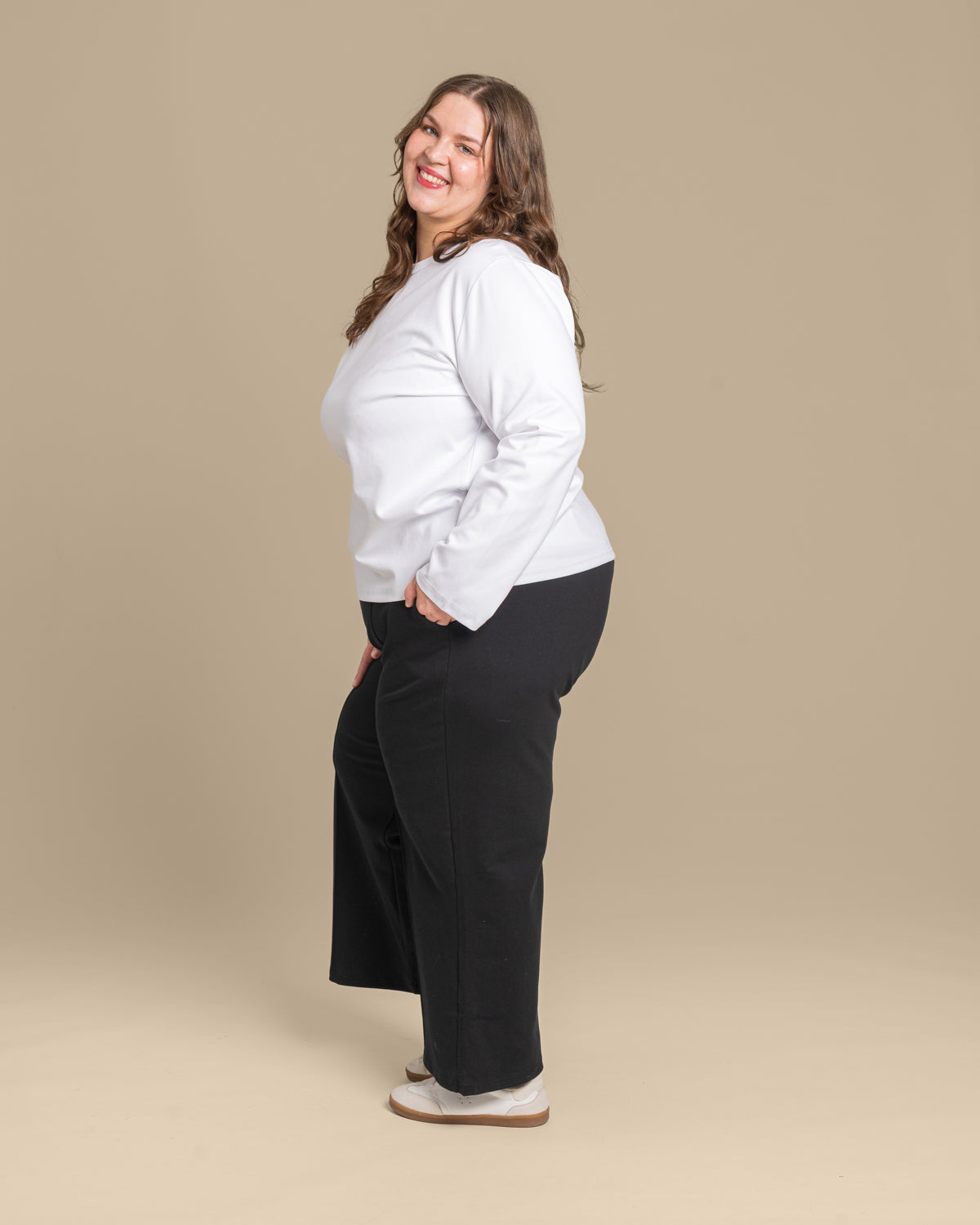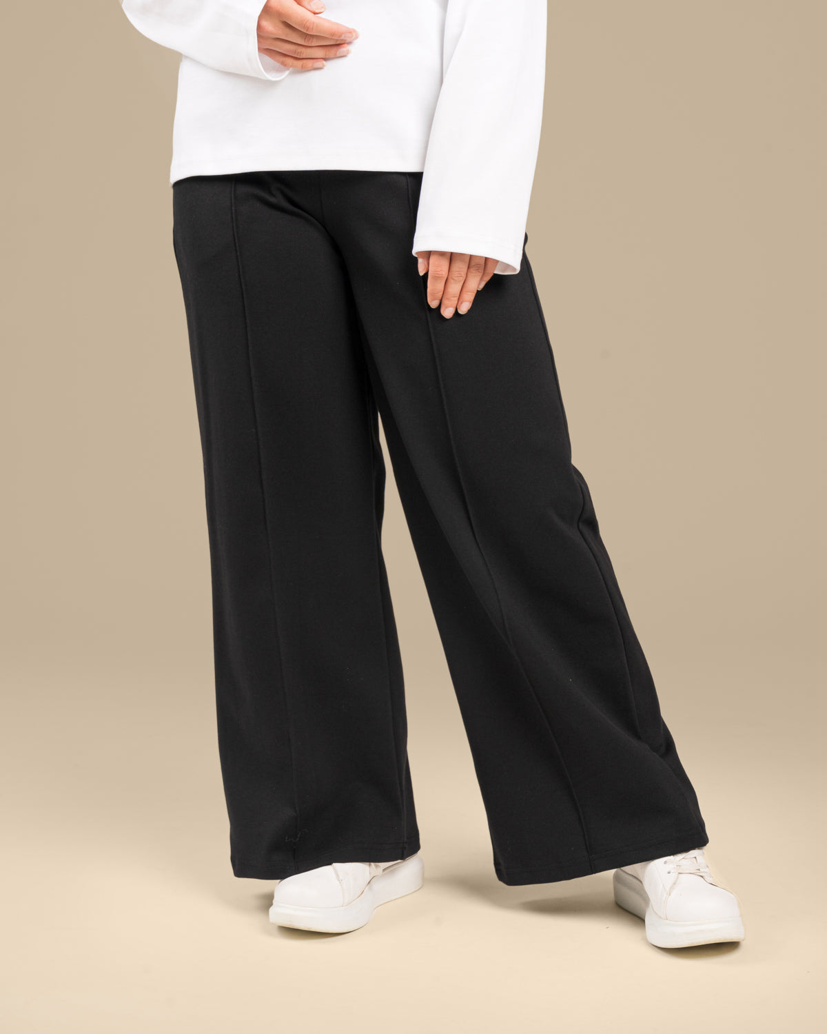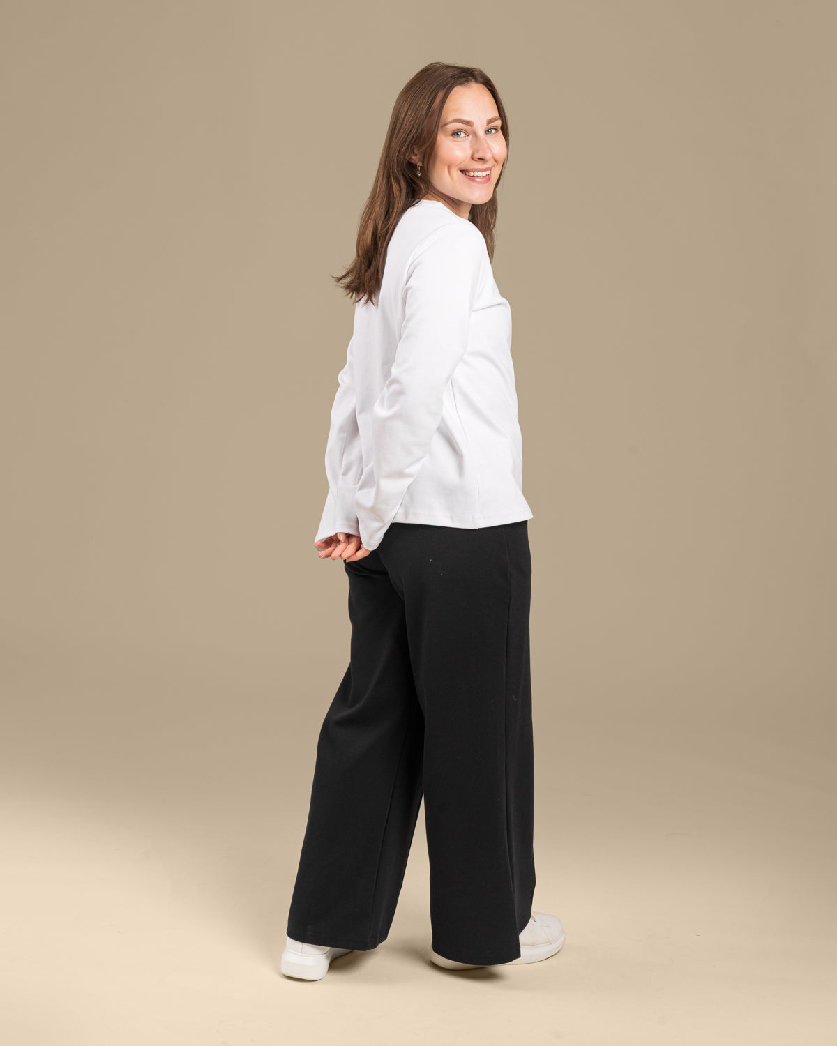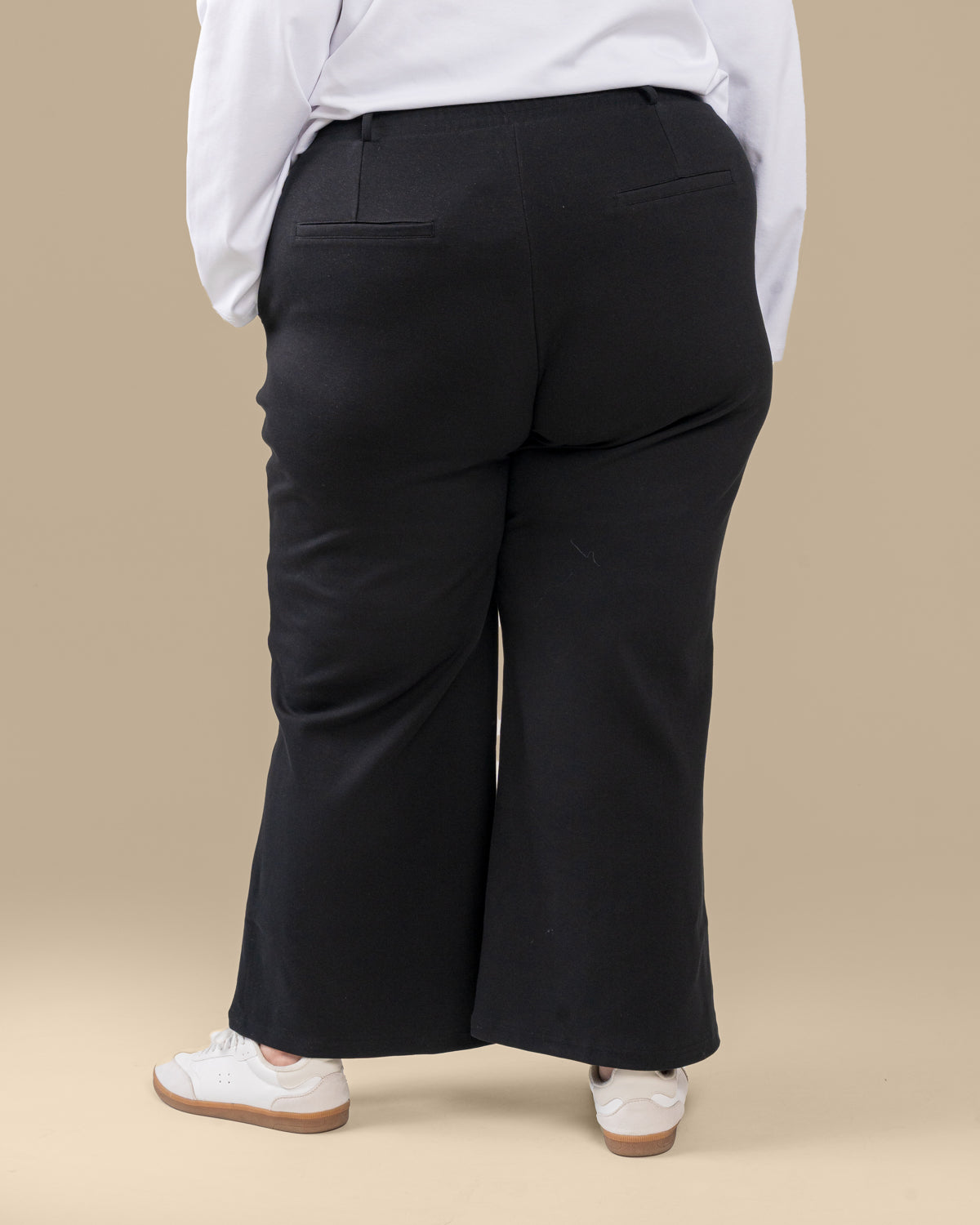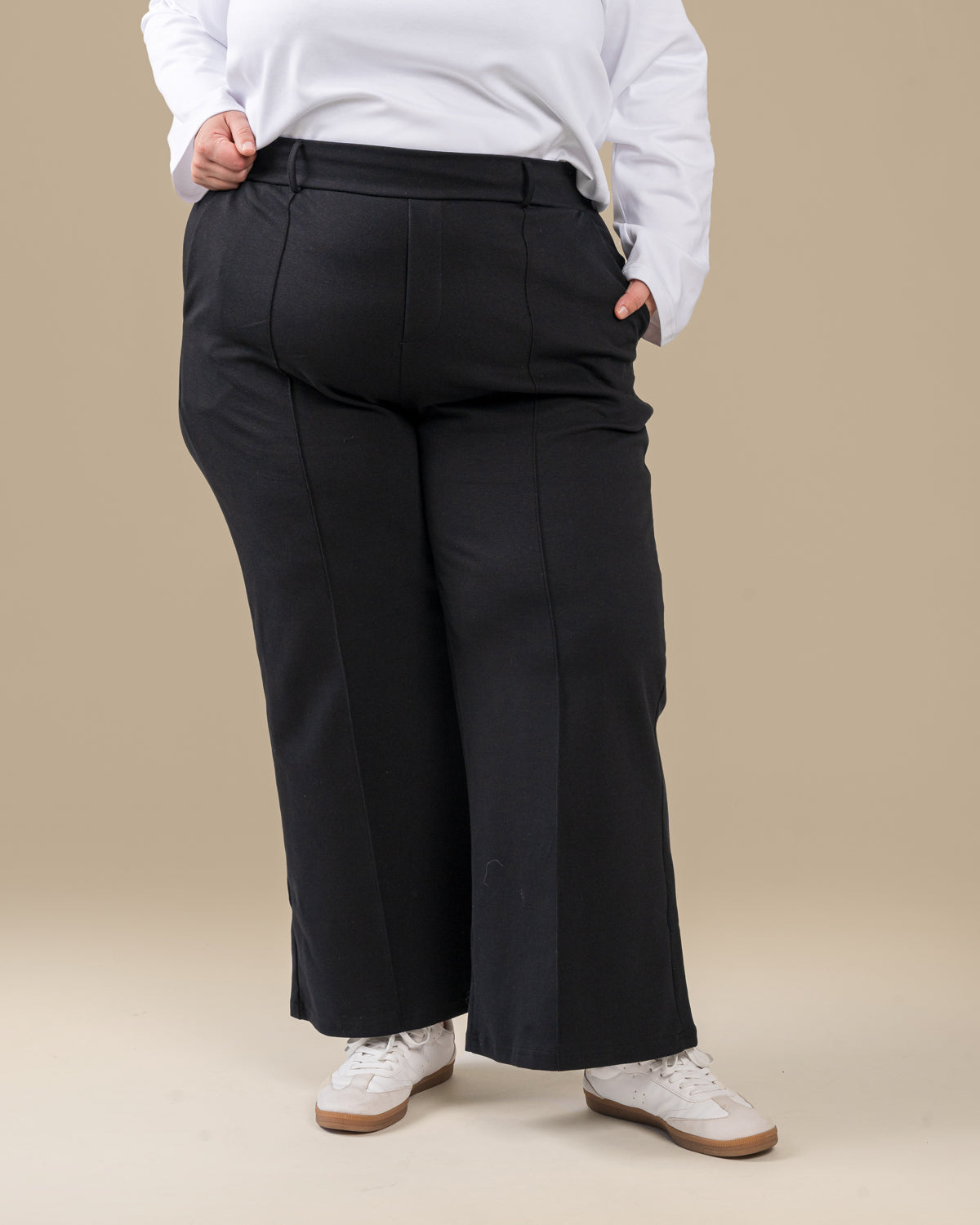 Toive Companyn tyylikkään skarpit Laskoshousut nyt myös leveällä lahkeella! Värinä monikäyttöinen ja ajaton musta.