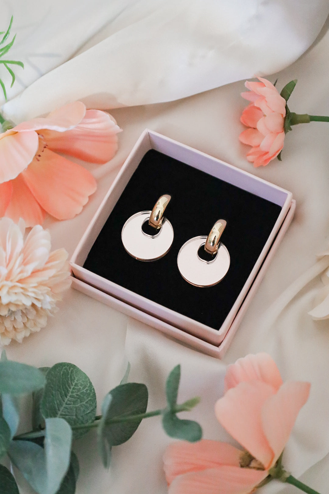 Renkaan materiaali on 24K kullattu messinki, joka on allergiaystävällinen materiaali eikä vapauta nikkeliä. Riipusosa on peiliakryyliä/akryyliä.