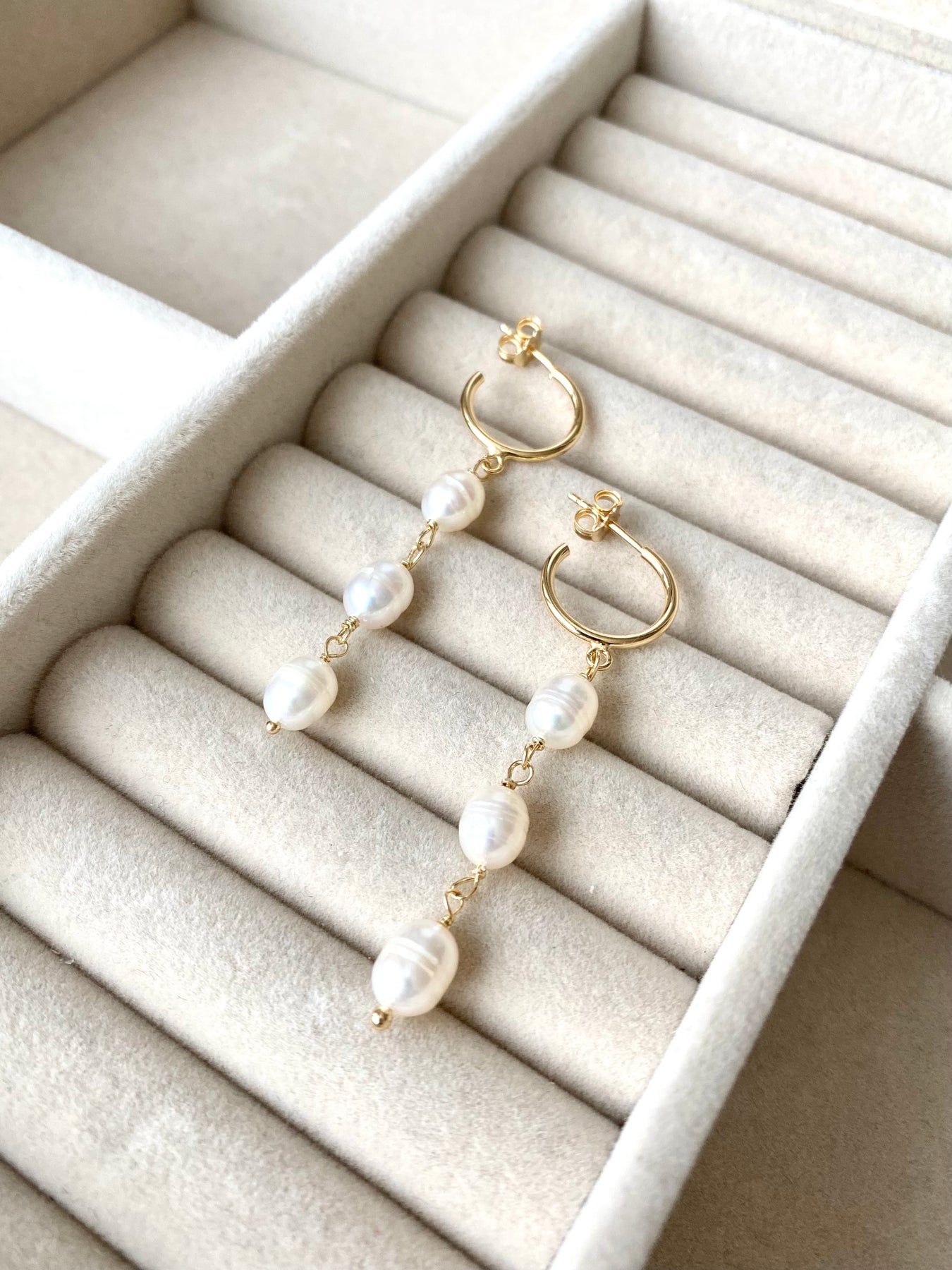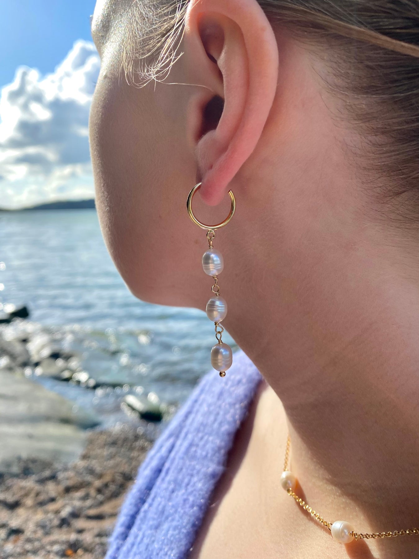 18K kullattu 925 sterling hopea (90 % kierrätyshopeaa), aidot makeanvedenhelmet.