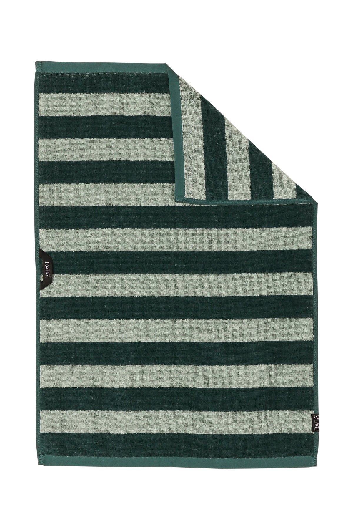 Kivasti raidoitettu käsipyyhe kahdessa kauniissa vihreän sävyssä. Raita-pyyhe on erinomainen valinta niin päivittäiseen käyttöön kotona kuin lahjaksi läheisille. Raidan leveys on 40 x 40 mm. Pyyhkeen koko on 50 x 70 cm. Materiaali on 100 % puuvillaa.