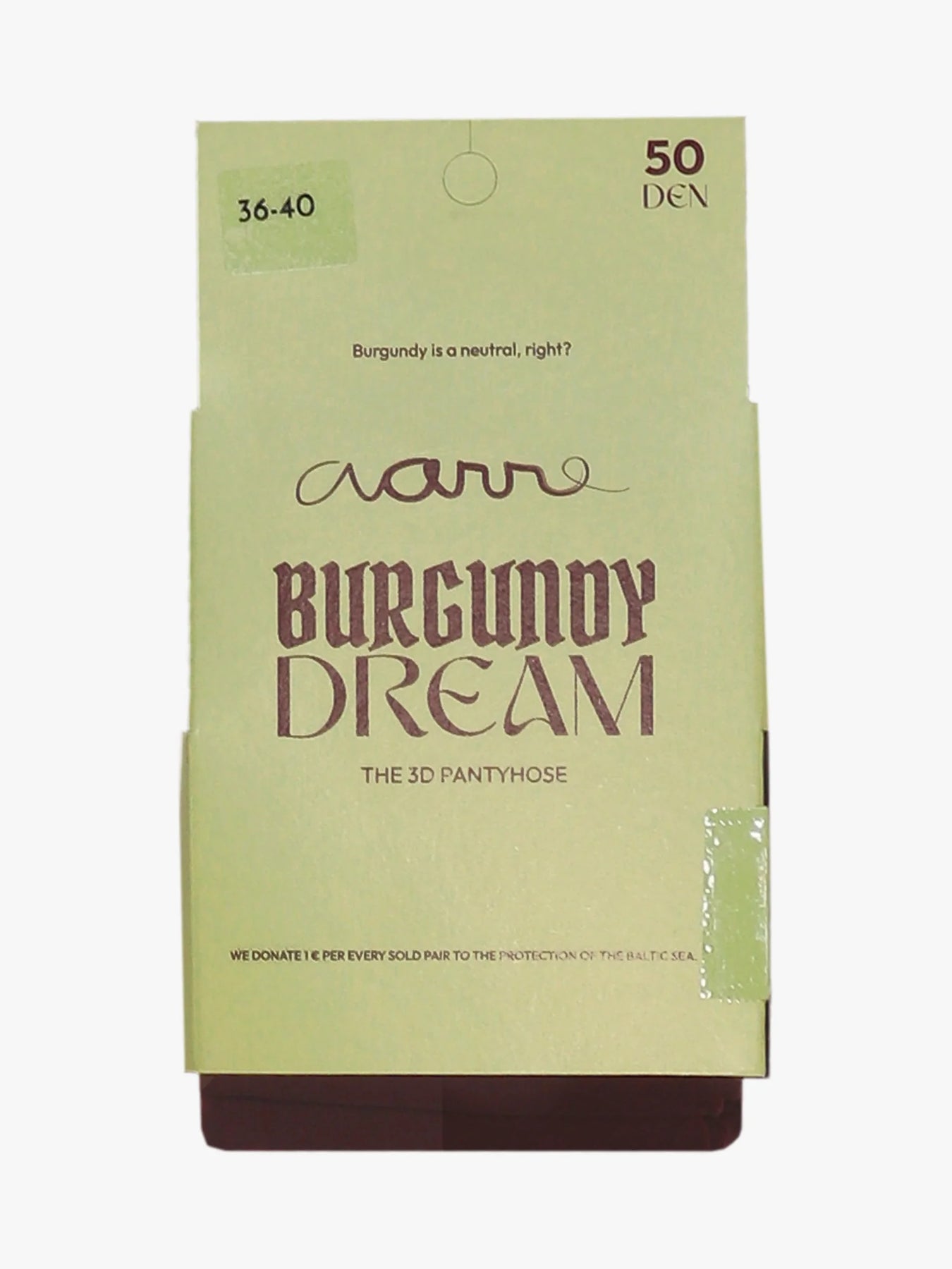 Mattapintaiset 50 denierin vahvuiset Aarre sukkahousut värissä Burgundy. Tumman viininpunaiset sukkahousut ovat hyvä vaihtoehto esimerkiksi mustille sukkahousuille. Nämä sukkahousut ovat niille, jotka ovat kyllästyneet epämukaviin ja valuviin sukkahousuihin! Sukkahousuissa on erityisen joustava ja hengittävä 3D rakenne, joka takaa paremman käyttömukavuuden. 50den vahvuinen sukkahousu on monikäyttöinen ja sopii sekä arkeen että myös hieman juhlallisempiin tilanteisiin. Pakkaus sisältää yhdet sukkahousut.