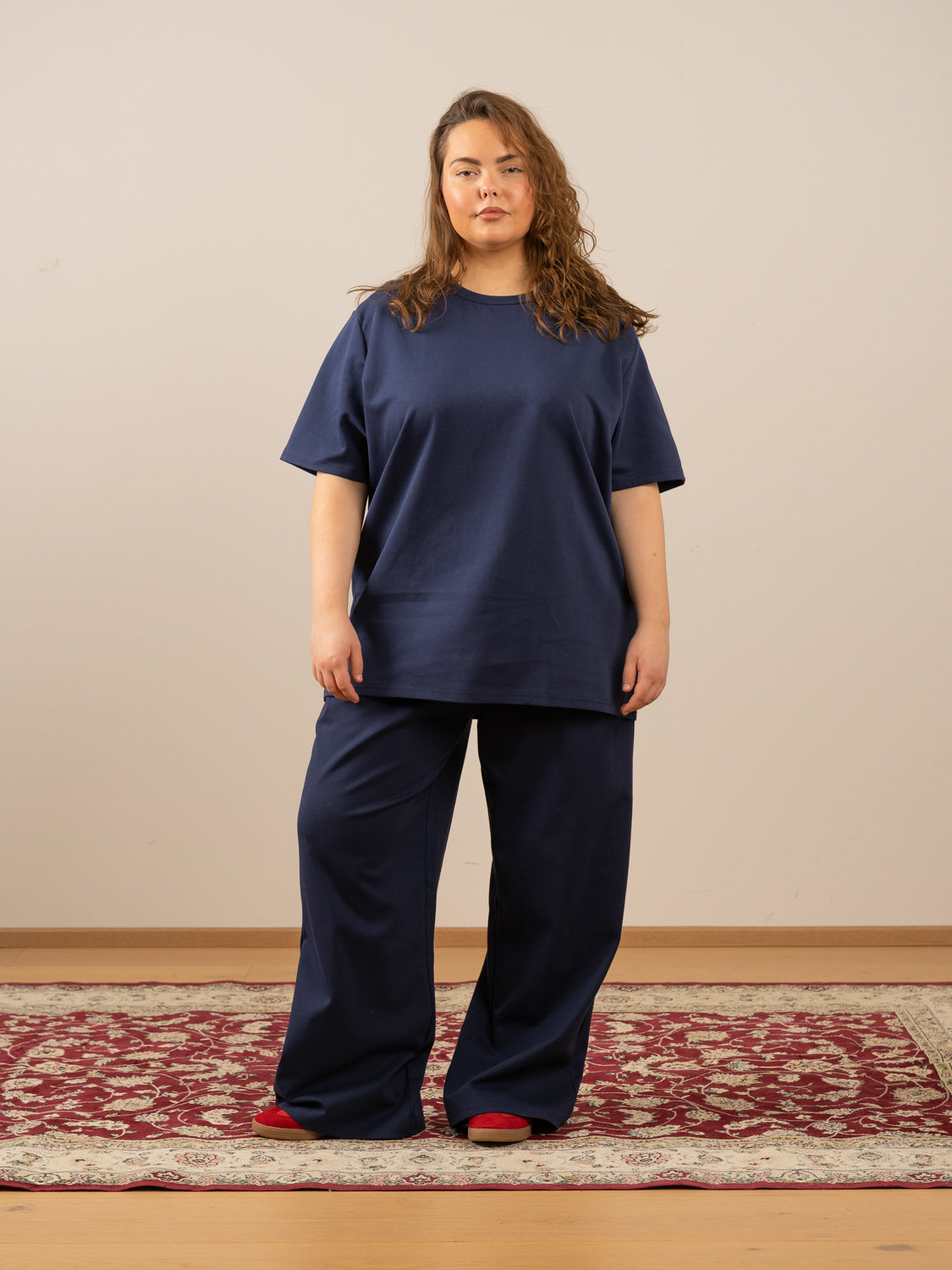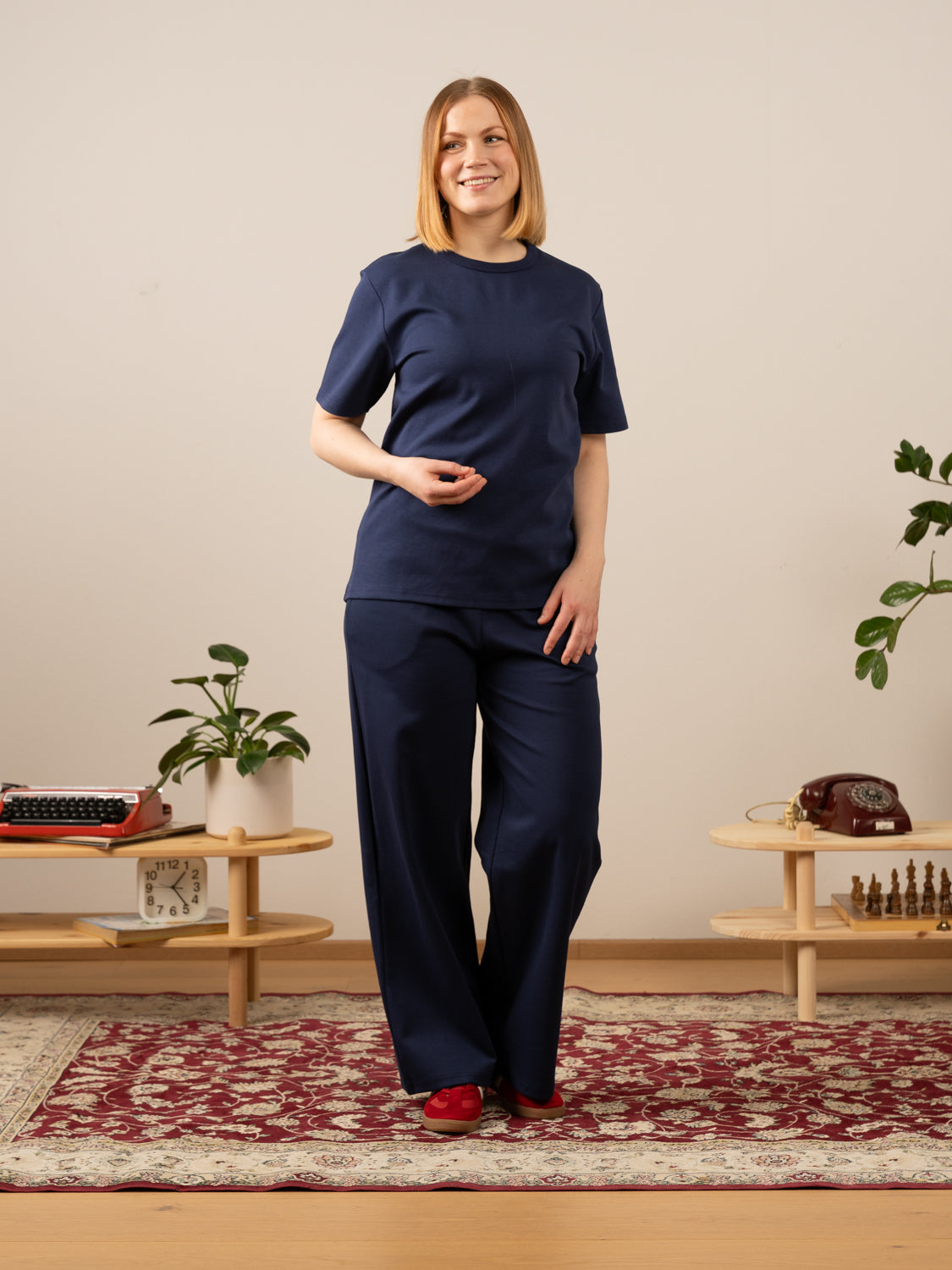 Toive Companyn laadukas Ajaton t-paita on rentoa unisex-mitoitusta ja se on malliltaan pidempi. Saatavilla useissa eri väreissä, tässä värinä monikäyttöinen ja ajaton tummansininen Meri-sävy.
