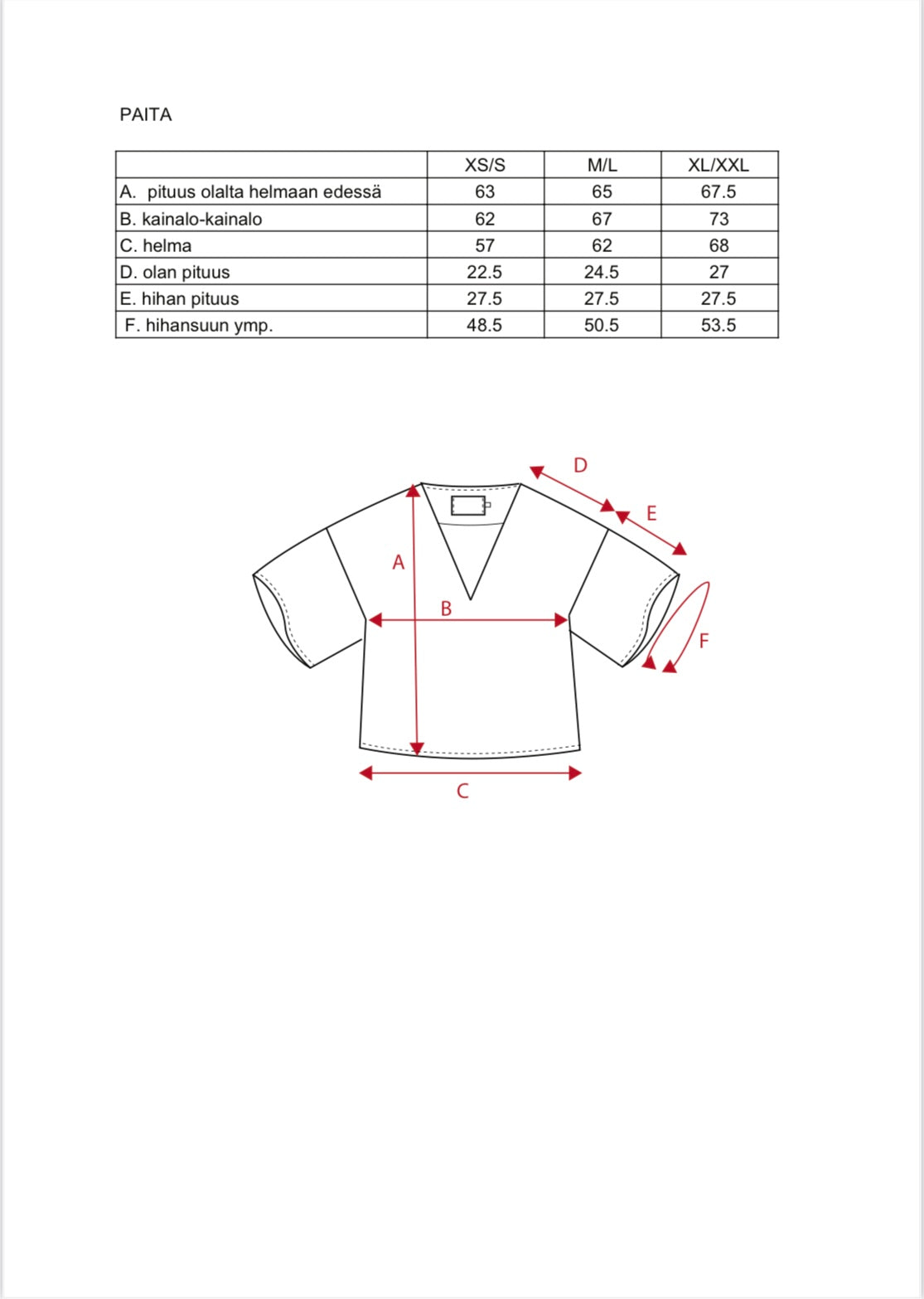 Beea kimono pusero on pidempihihainen versio, Viljavan aiemman malliston Vieno paita mallista.