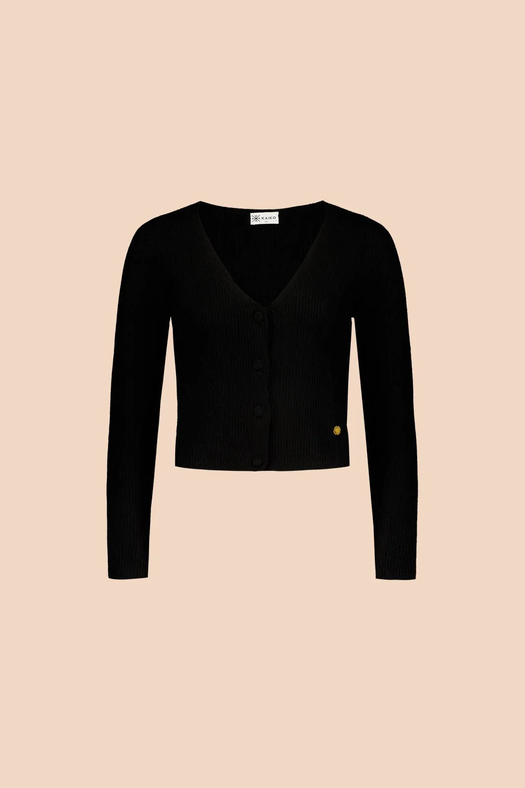 Kaiko Clothingin tyylikäs vajaamittainen kashmir-neuletakki mustana!