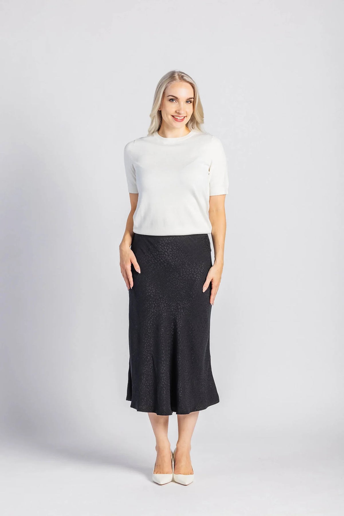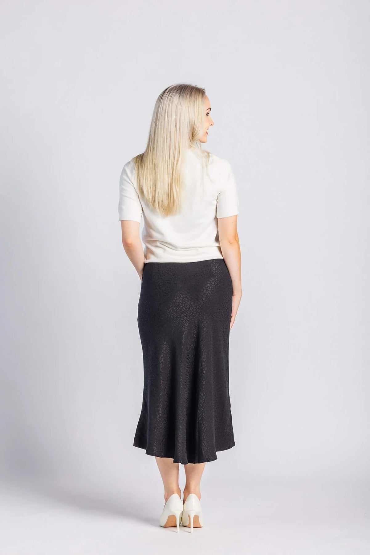 Nakoan tyylikäs Classic Midi Skirt tyylikkäässä mustassa Black Leo cupro-kankaassa!
