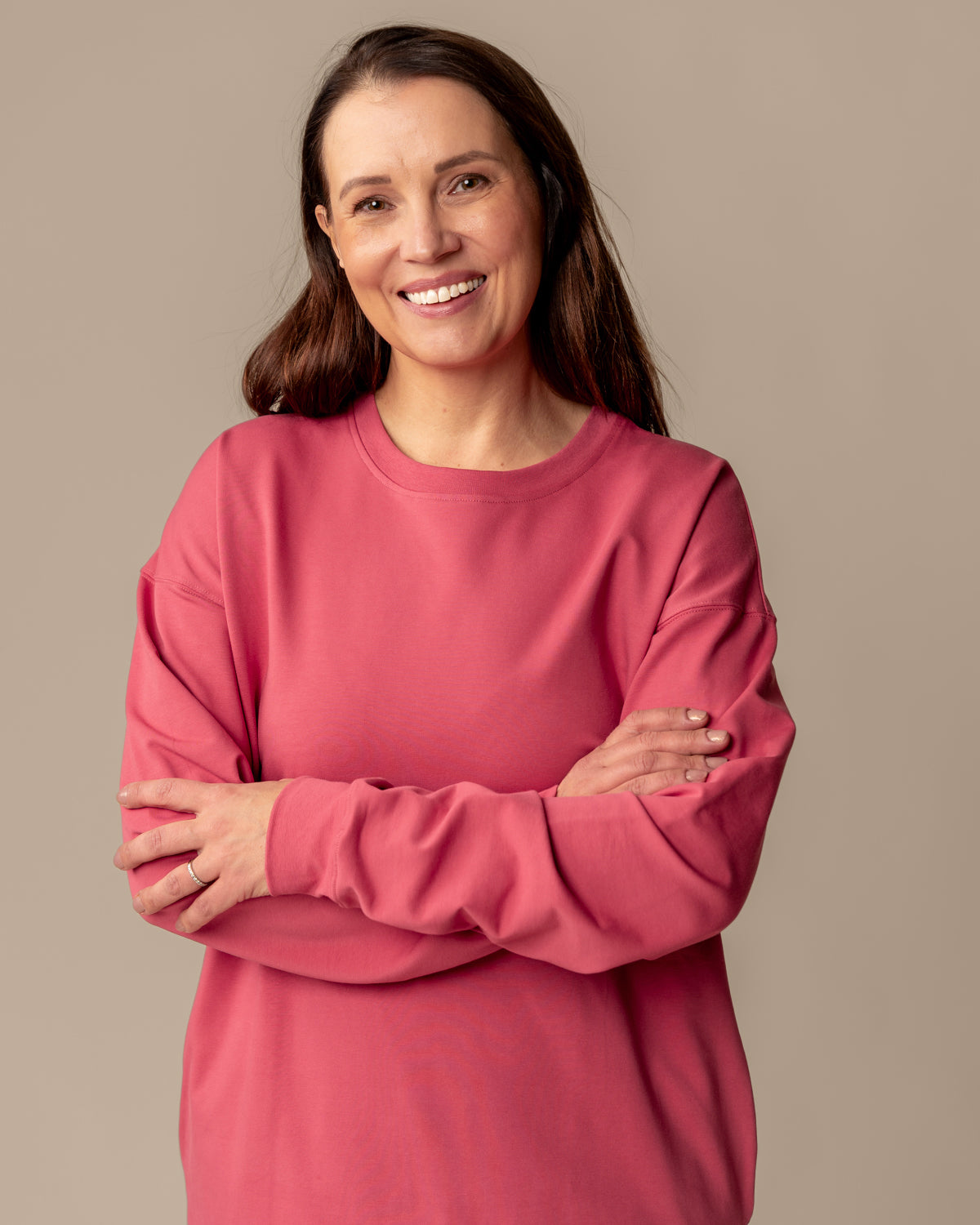 Ihanan pehmeä collegemekko, jonka voit yhdistää rennosti leggingseihin ja tennareihin, tai halutessasi sukkiksiin ja saappaisiin. Toiveen collegemekko on pehmeä ja joustava ja ylettyy suunnilleen polven kohdalle 165cm pitkällä ihmisellä.