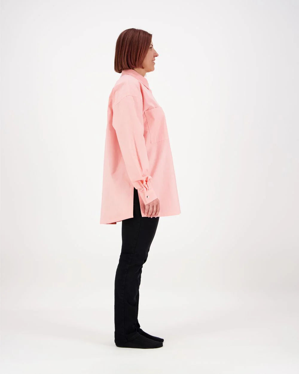 Vuokon klassikkotuote, yhden koon rento kauluspaita joka sopii jokaiselle! Tässä värivaihtoehtona pehmeän vaaleanpunainen lohenpunainen sävy.