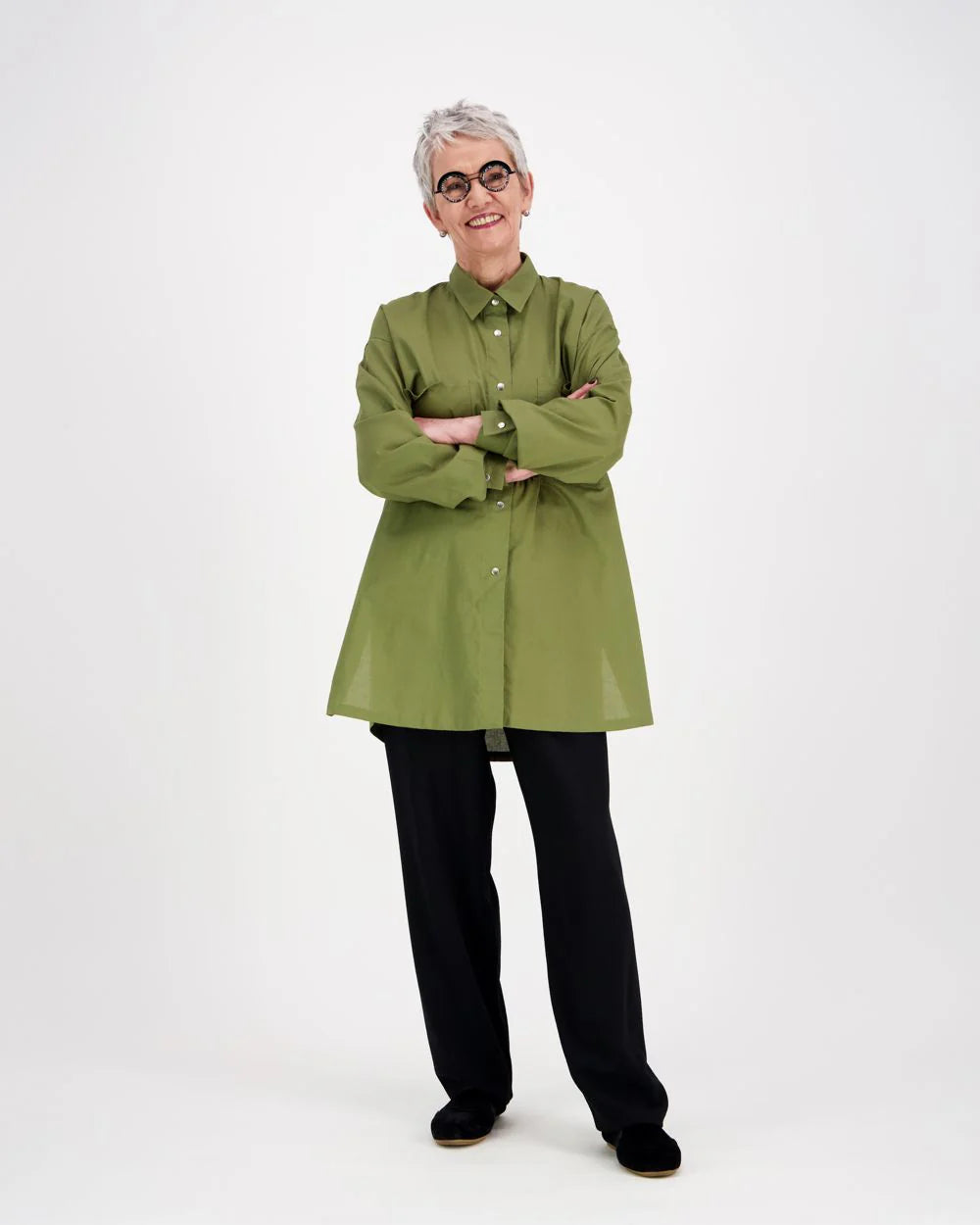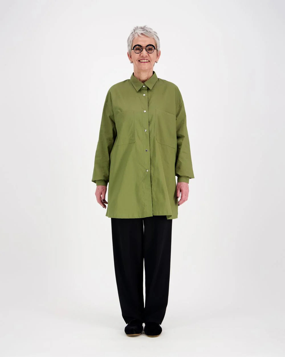 Vuokon klassikkotuote, yhden koon rento kauluspaita joka sopii jokaiselle! Tässä värivaihtoehtona murretun vihreä oliivin sävy.