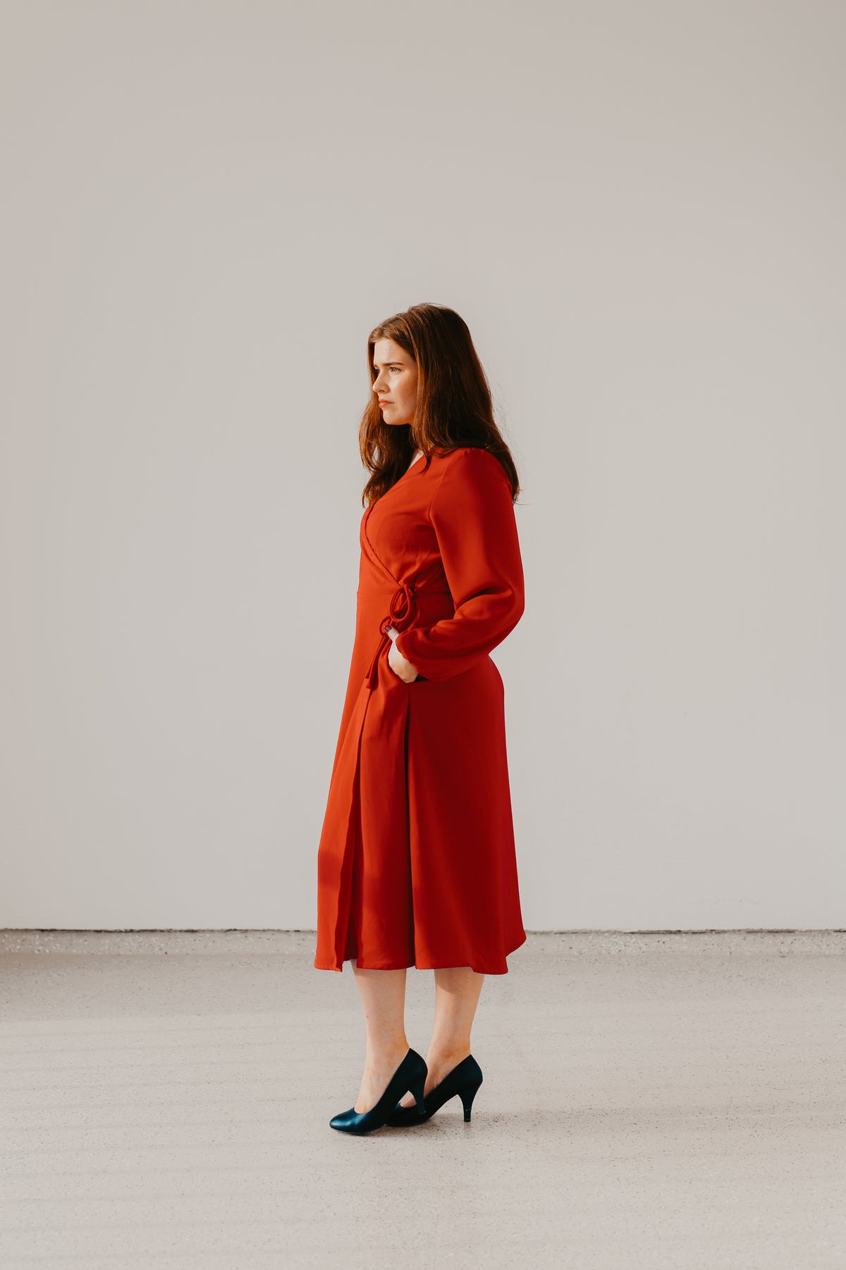 Tyylikäs, mukava ja monikäyttöinen punainen Karla kietaisumekko kotimaiselta Viljava Designilta!