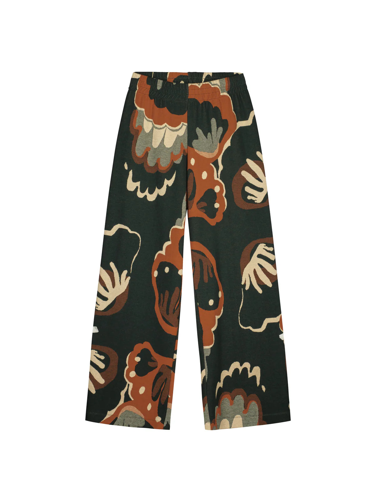Mainion tyylikäs syksyn sävyissä hehkuva Seashell-kuosi koristaa ihanan pehmeitä leveälahkeisia neuloshousuja!