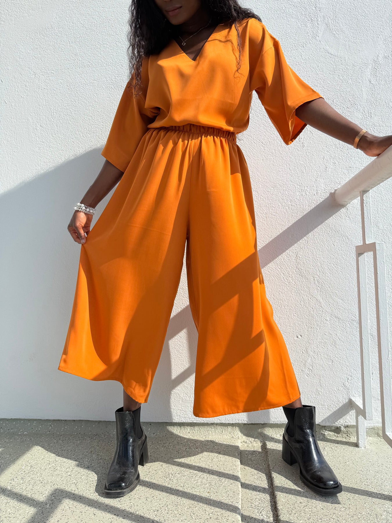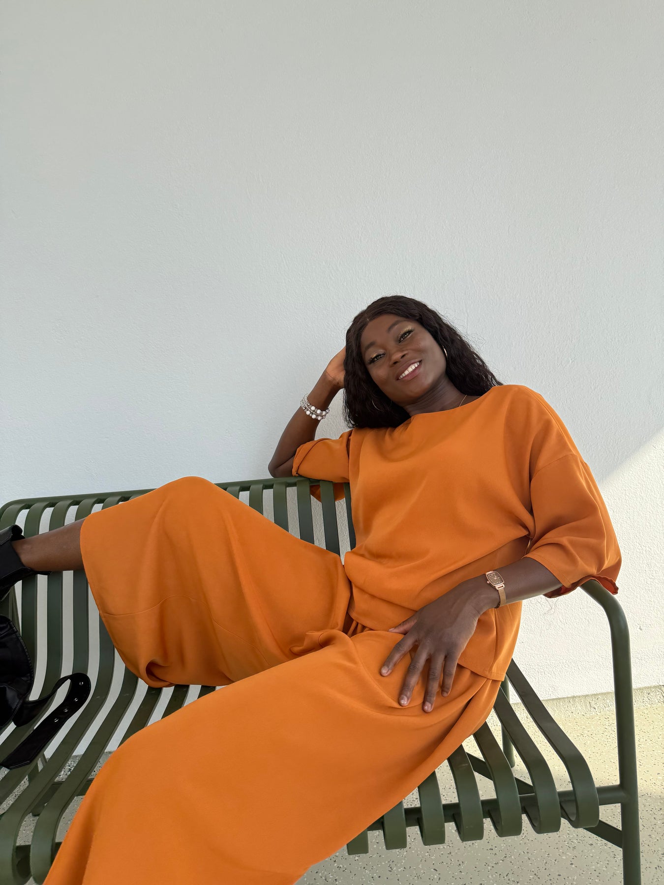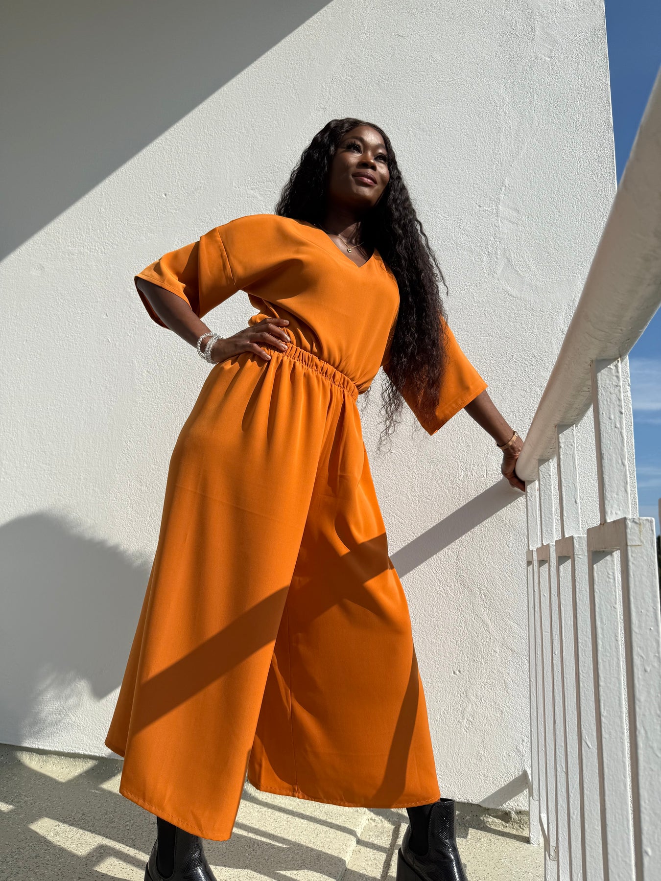Tyylikäs, mukava ja monikäyttöinen okran värinen housuhame kotimaiselta Viljava Designilta!