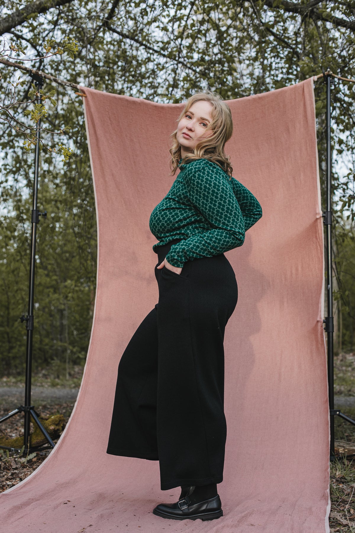 Vinkki: Neulos antaa leveydestä jonkin verran myöden käytössä, mutta palautuu pesussa takaisin mittoihinsa. Pesuväliä voi pidentää myös höyryttämällä housut paikallisesti esim. polvipussit.