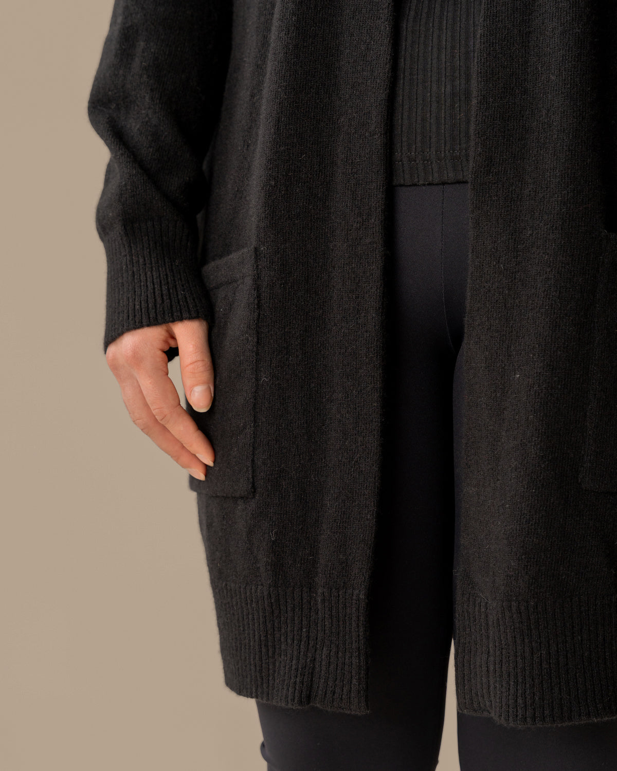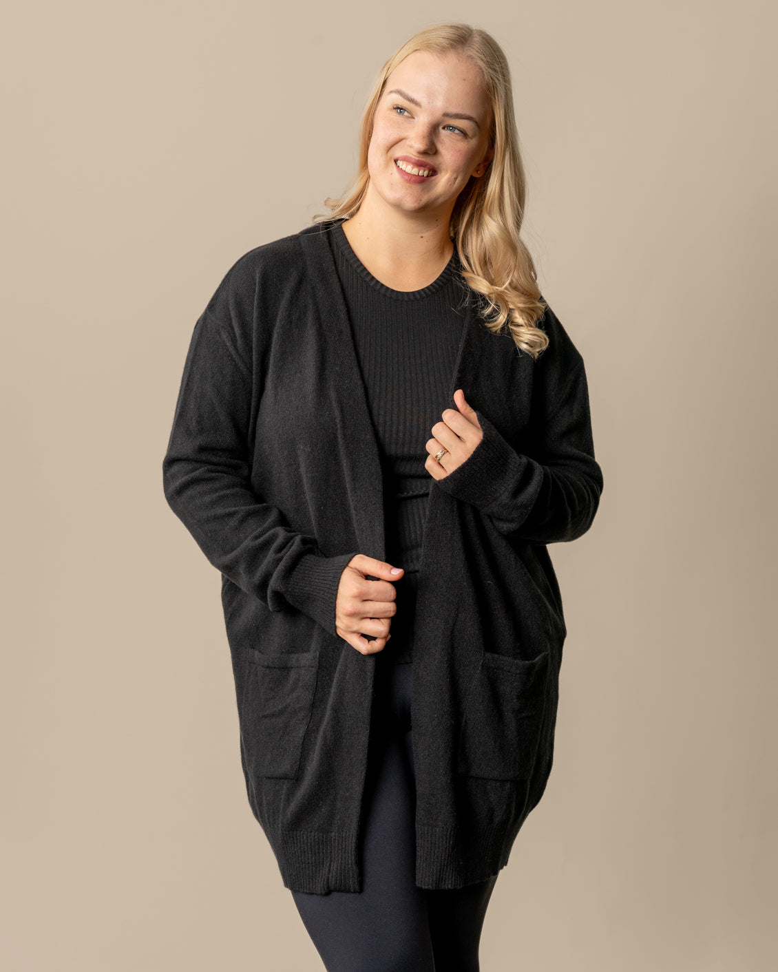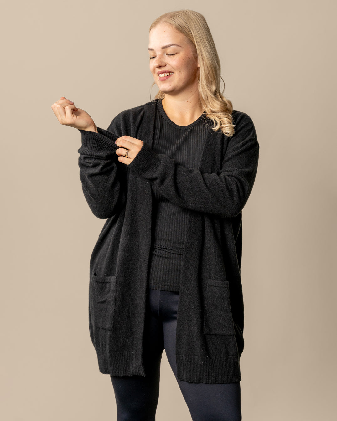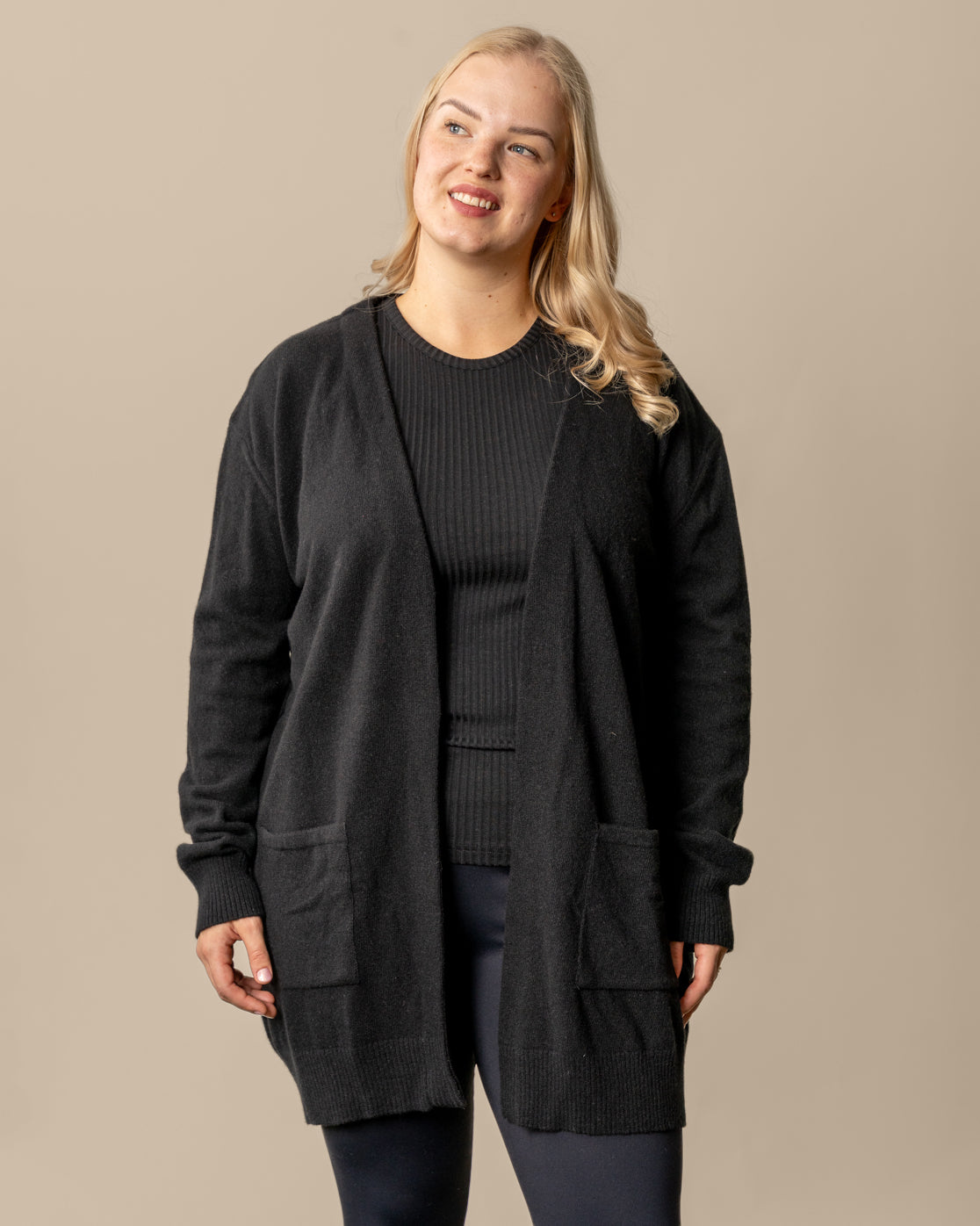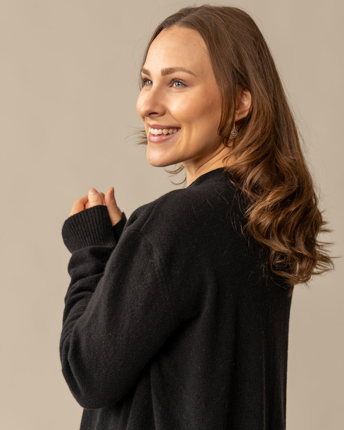 Toive Companyn ihanan pehmeä pidemmän mallinen merinovillainen Tyyni neuletakki. Värinä klassinen musta.