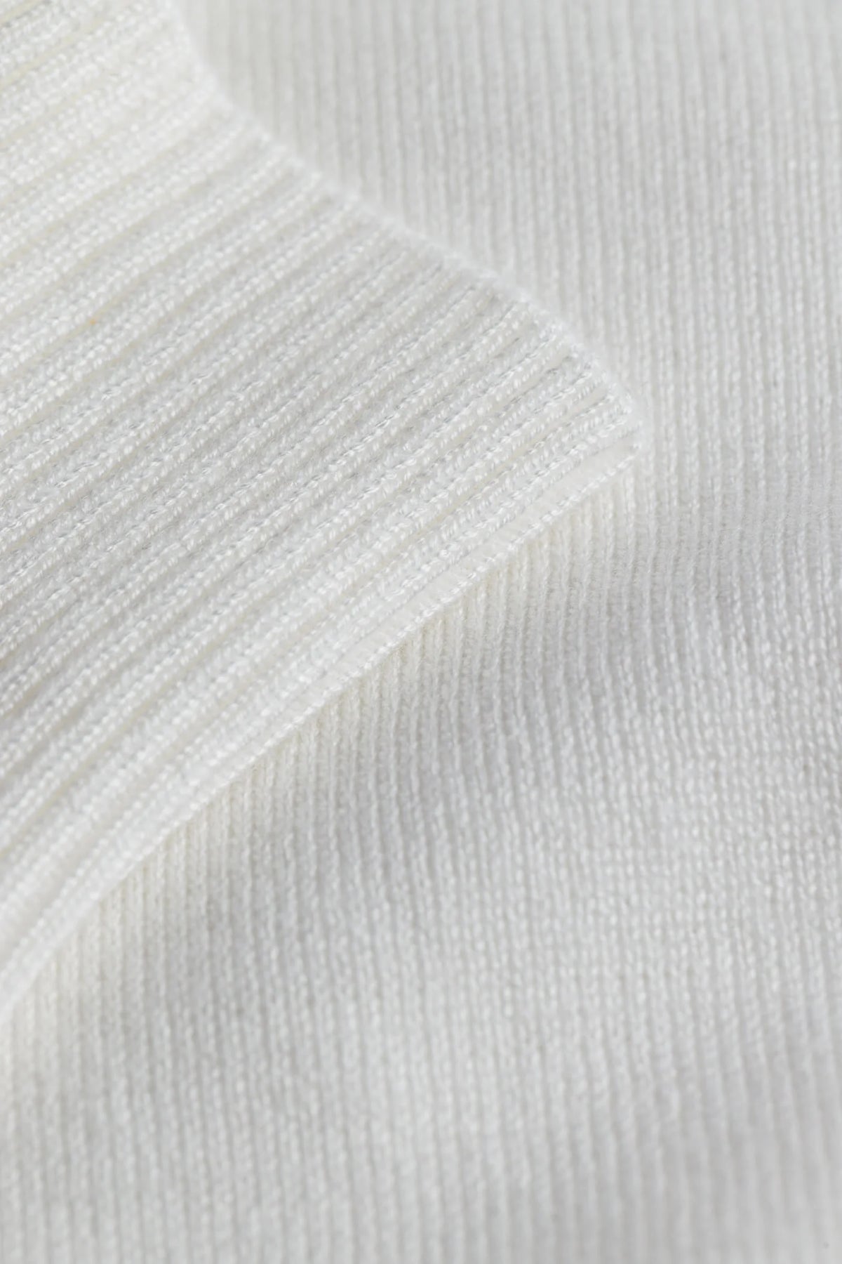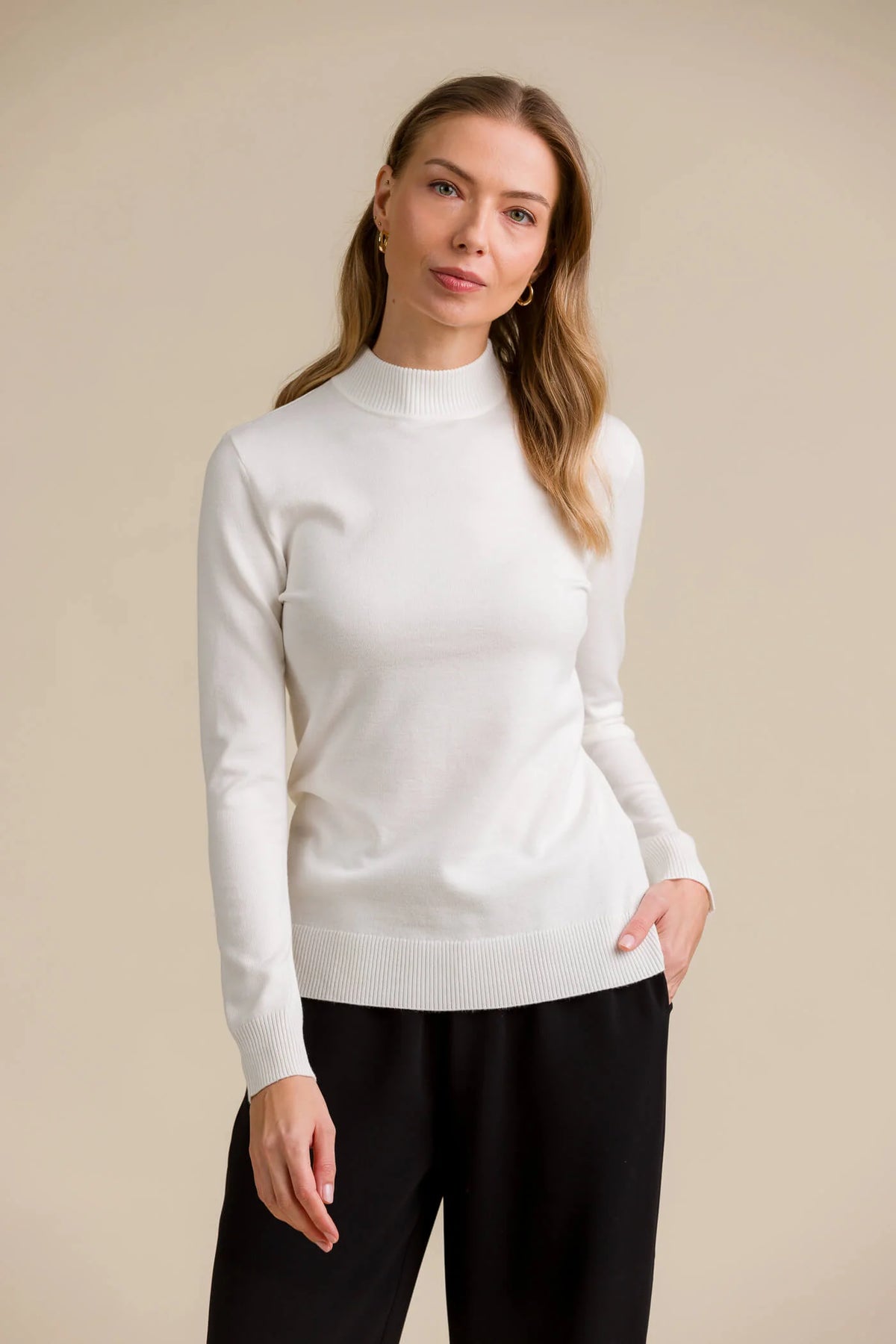 Voglian kaunis puhtaan valkoinen viskoosineulepusero poolokauluksella!