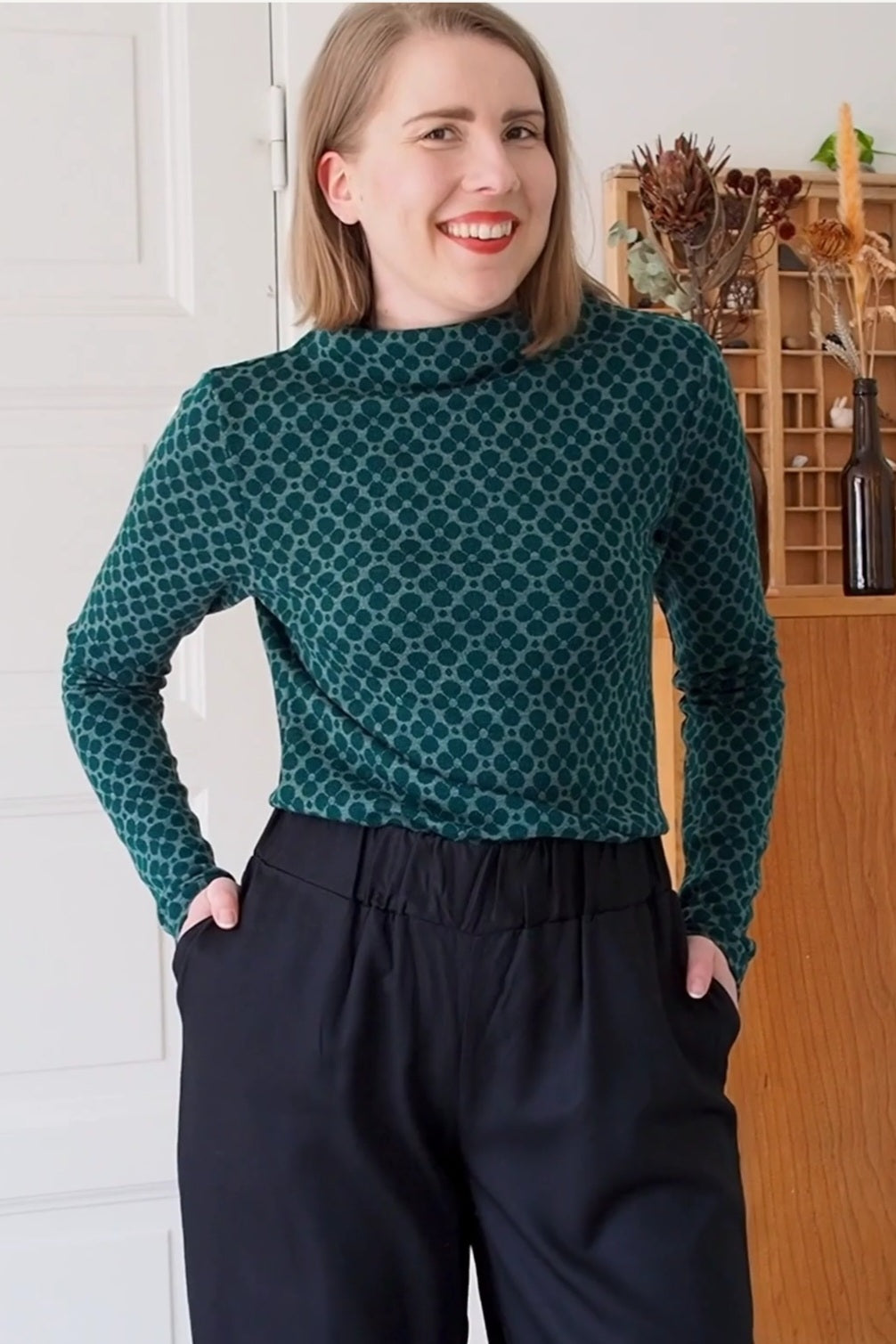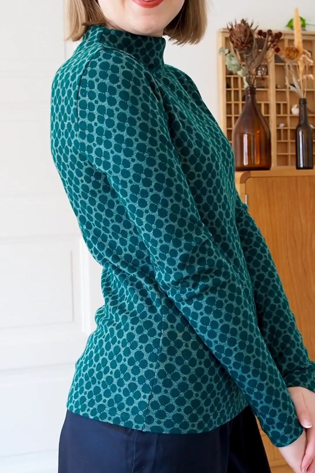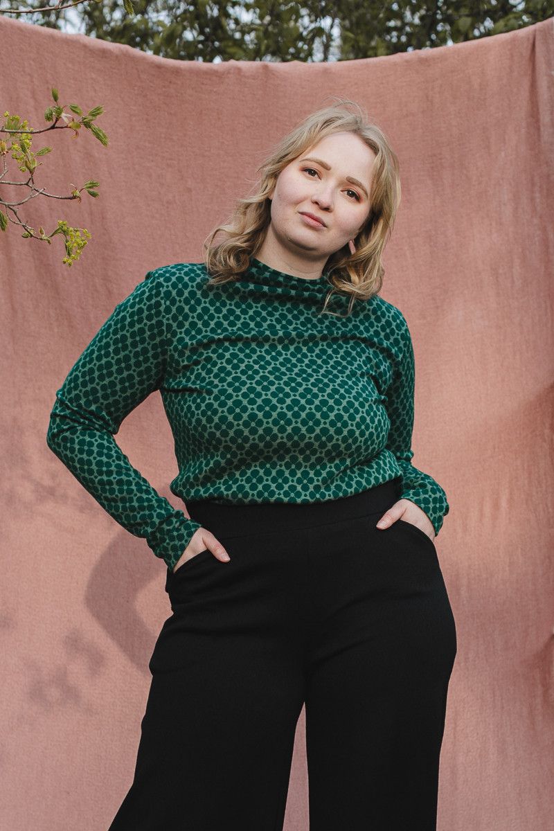 Noukin suosittu merinovillainen merinopoolo Iisi kauniissa vihreässä Apila-kuosissa!