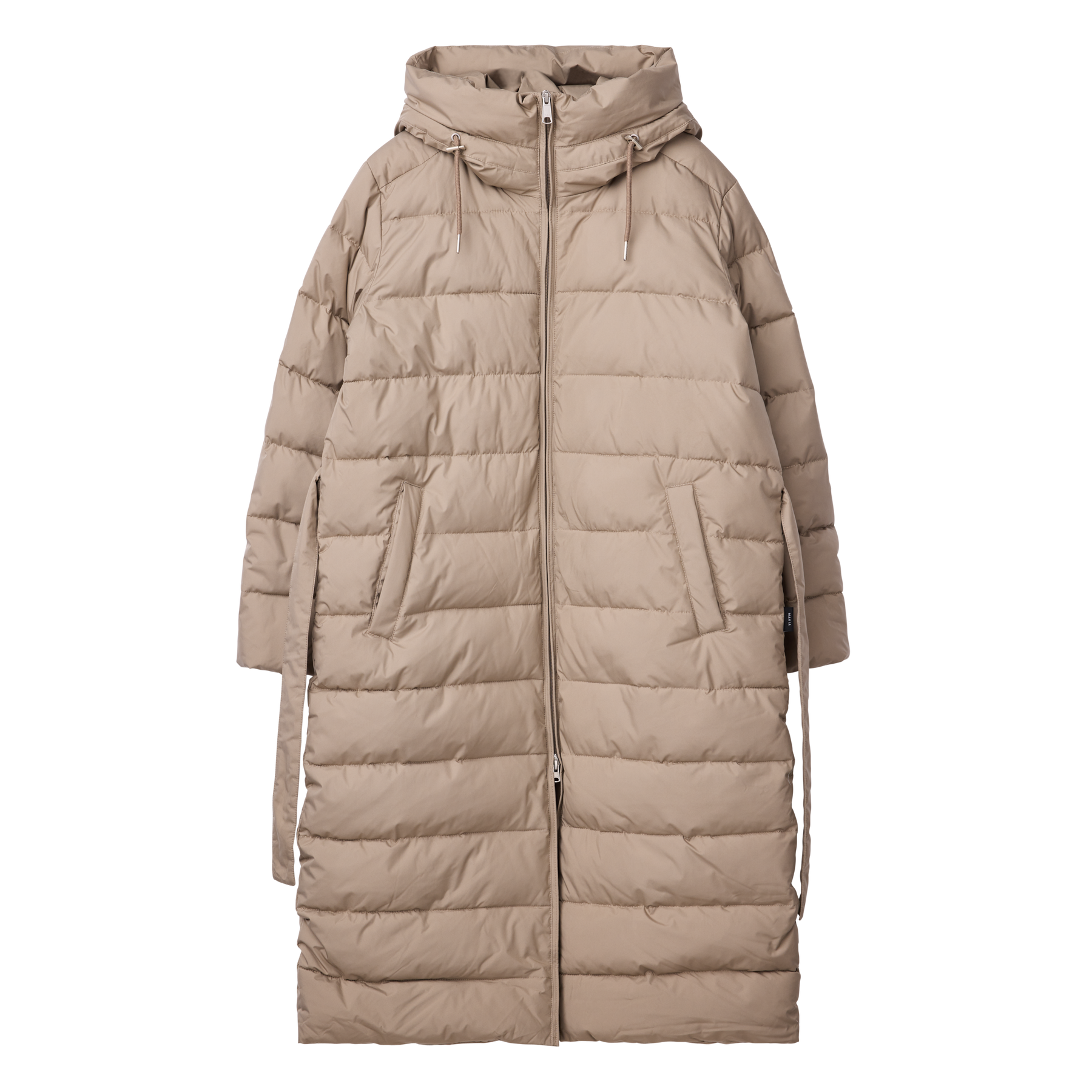 Pitkä puffer-takki, joka pitää lämpimänä läpi talven. Väljästi istuvan Freja takin vuori on valmistettu 100 % Sorona®-kierrätyspolyesteristä tehdystä keinountuvasta. Osittain kasviperäinen Sorona®-eriste on hengittävä ja säilyttää lämmön. Snorkkelihuppu suojaa tuulelta, ja vyöyksityiskohta antaa mahdollisuuden säätää istuvuutta tarpeen mukaan.