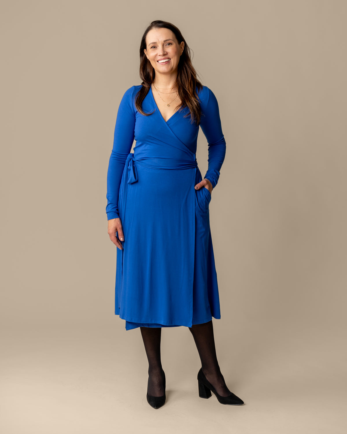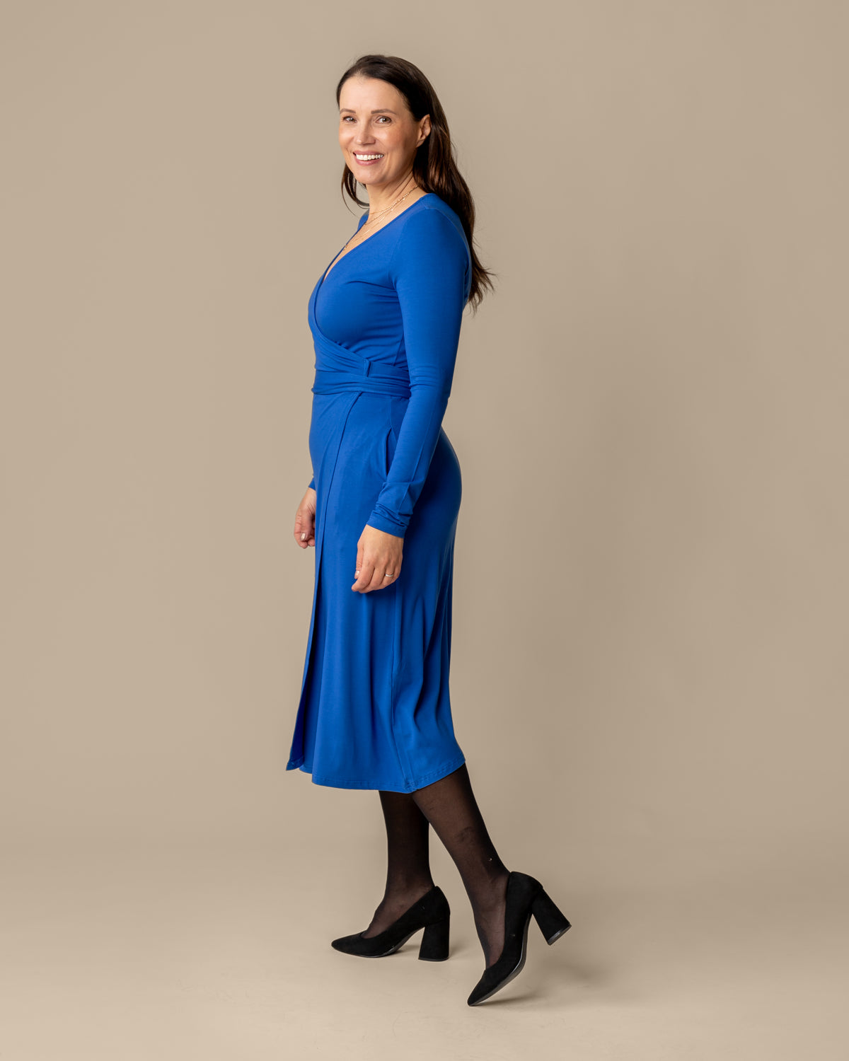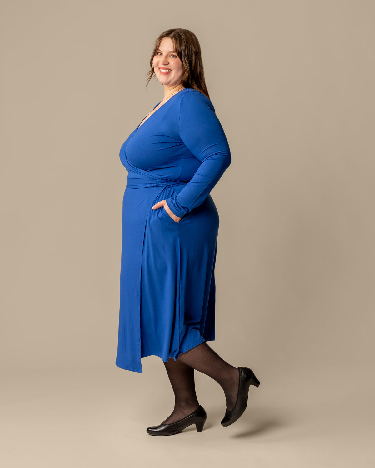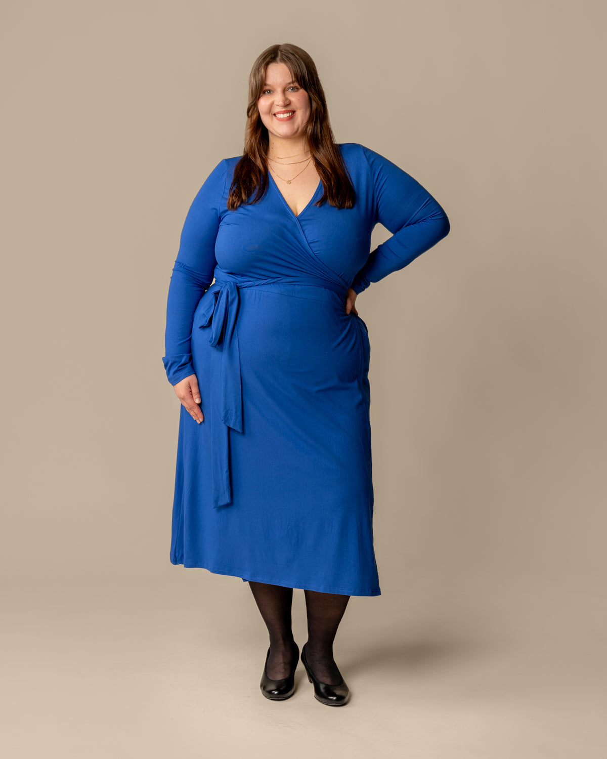 Toive Companyn tyylikäs, naisellinen kietaisumekko! Vaatekaapin luottotuote, joka on armollinen kehon koon vaihteluille. Sävynä kirkas sininen ultramariini.