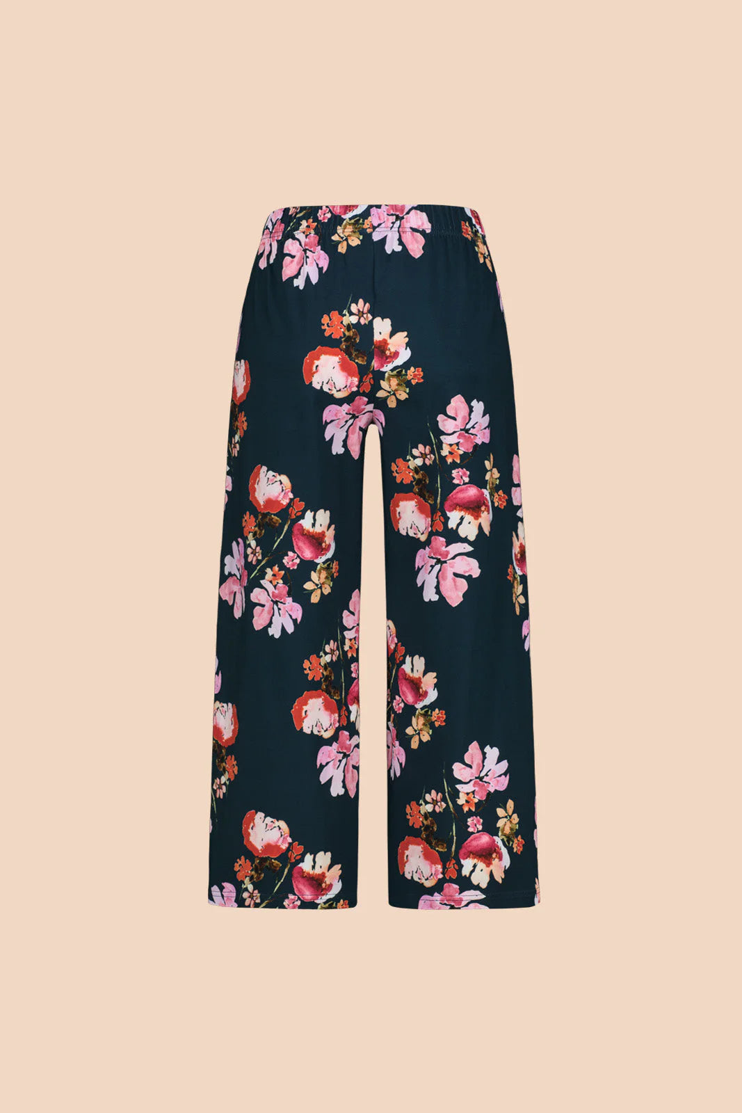 Kaiko Clothingin rennon tyylikkäät Soft Culottes -housut kauniissa tummansinisessä Cherry Blossom Navy -kirsikankukkakuosissa!