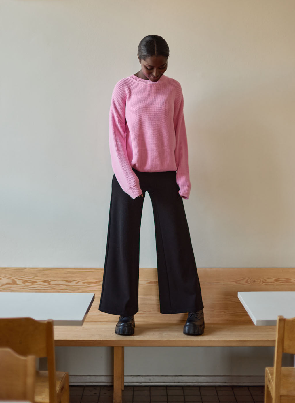 Metsolan More Love -malliston henkeen suunniteltu neule yhdistää leikkisän värin ja vastuullisen materiaalin: luomupuuvilla tuntuu mukavalta käyttää. Väljempi mitoitus tekee neuleesta rennon valinnan, joka sopii täydellisesti niin farkkujen, hameiden kuin housujen kaveriksi.