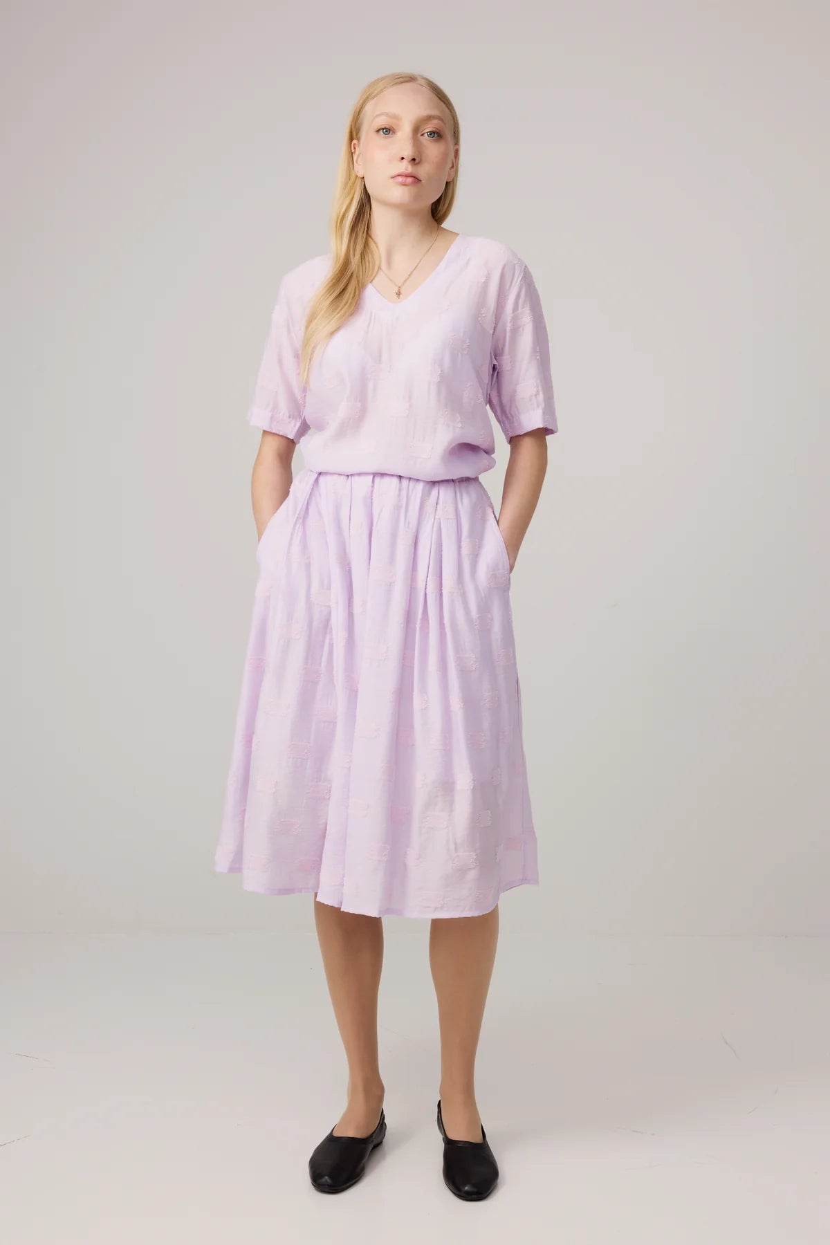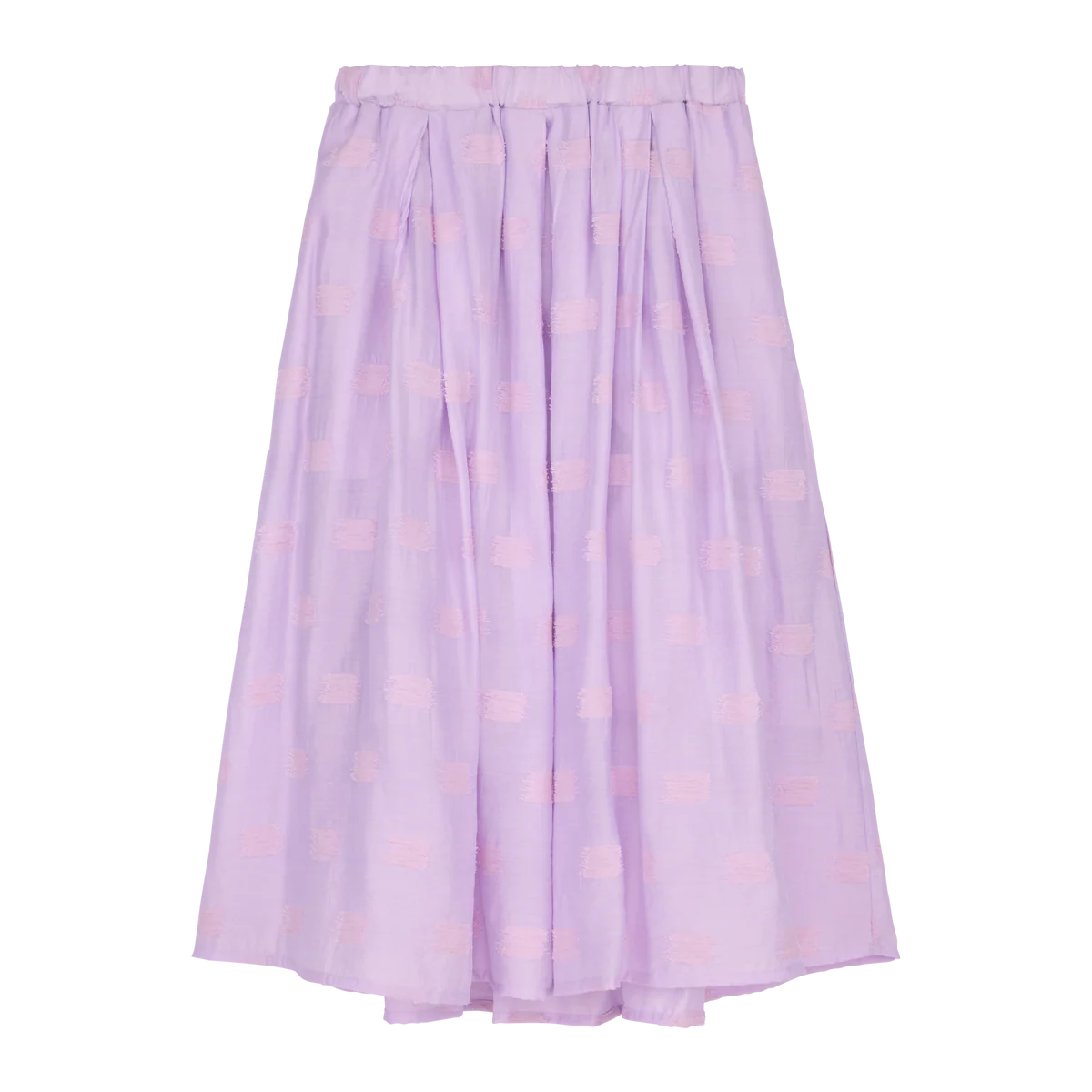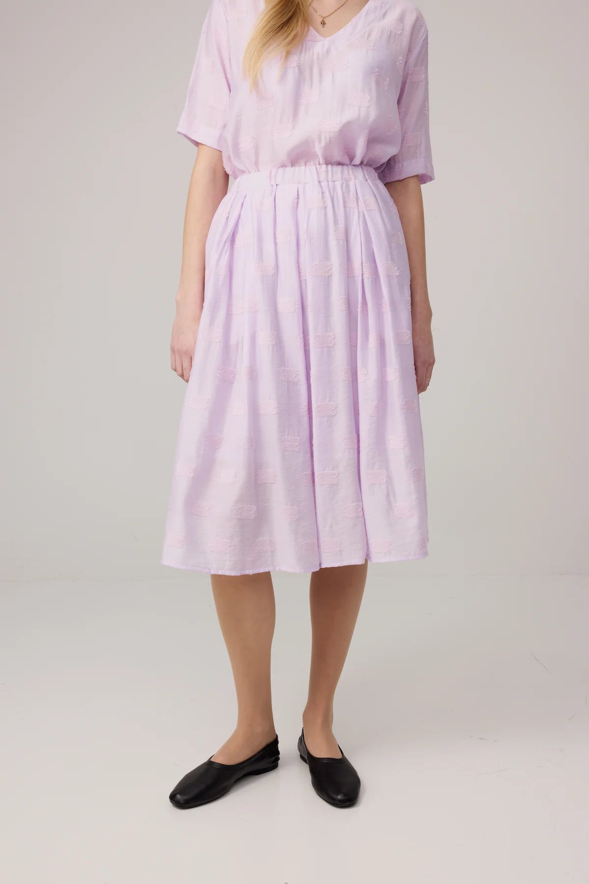 Kauniin laventelin sävyinen Zuri hame Makialta! Helposti yhdistettävissä saman kuosisen Makian Zuri puseron kanssa.