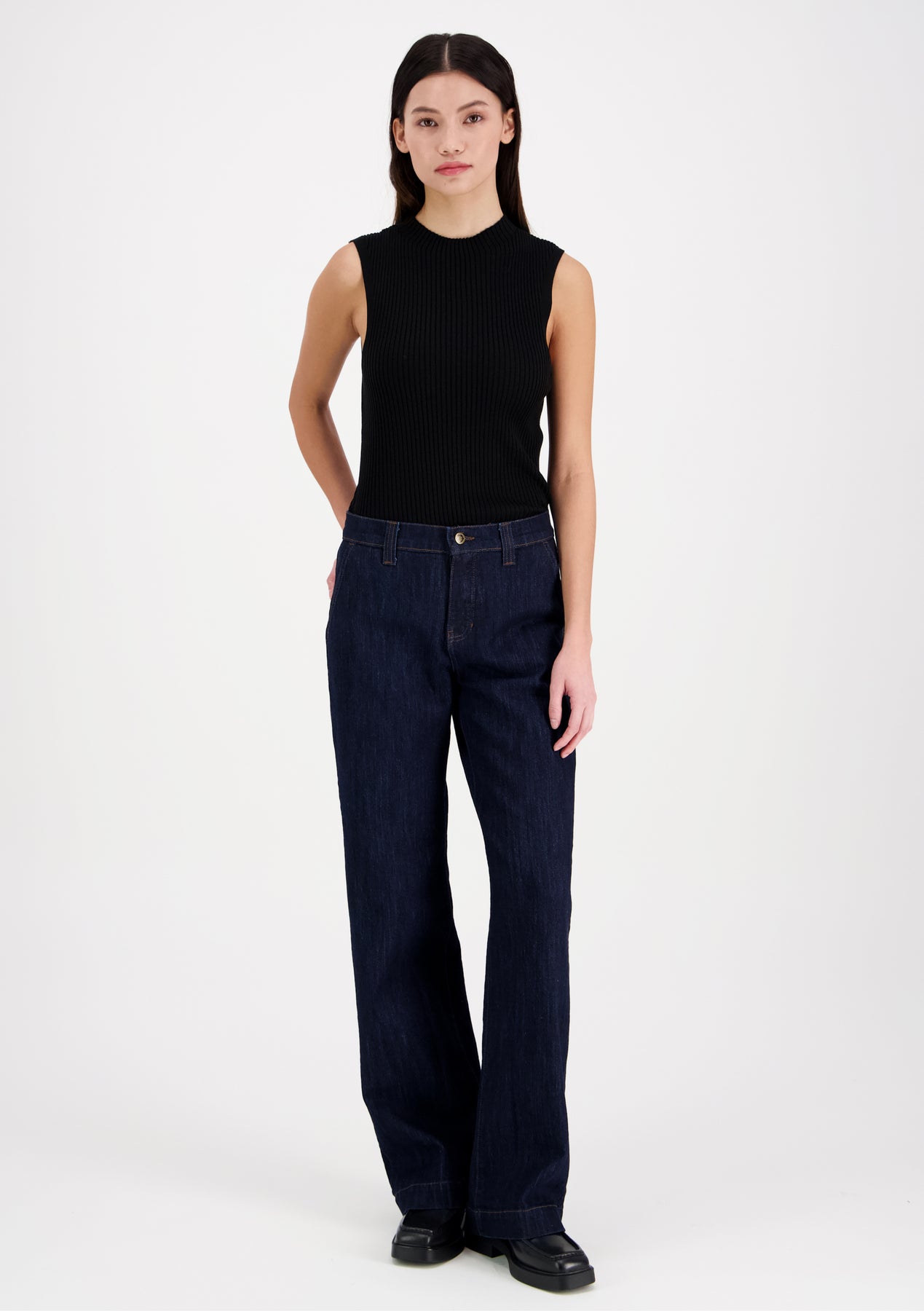 Normaalikorkuinen vyötärö ja suora lahkeenlinja tekevät Katesta ajattoman klassikon. Väljät lahkeet lisäävät mukavuutta ja rentoutta.