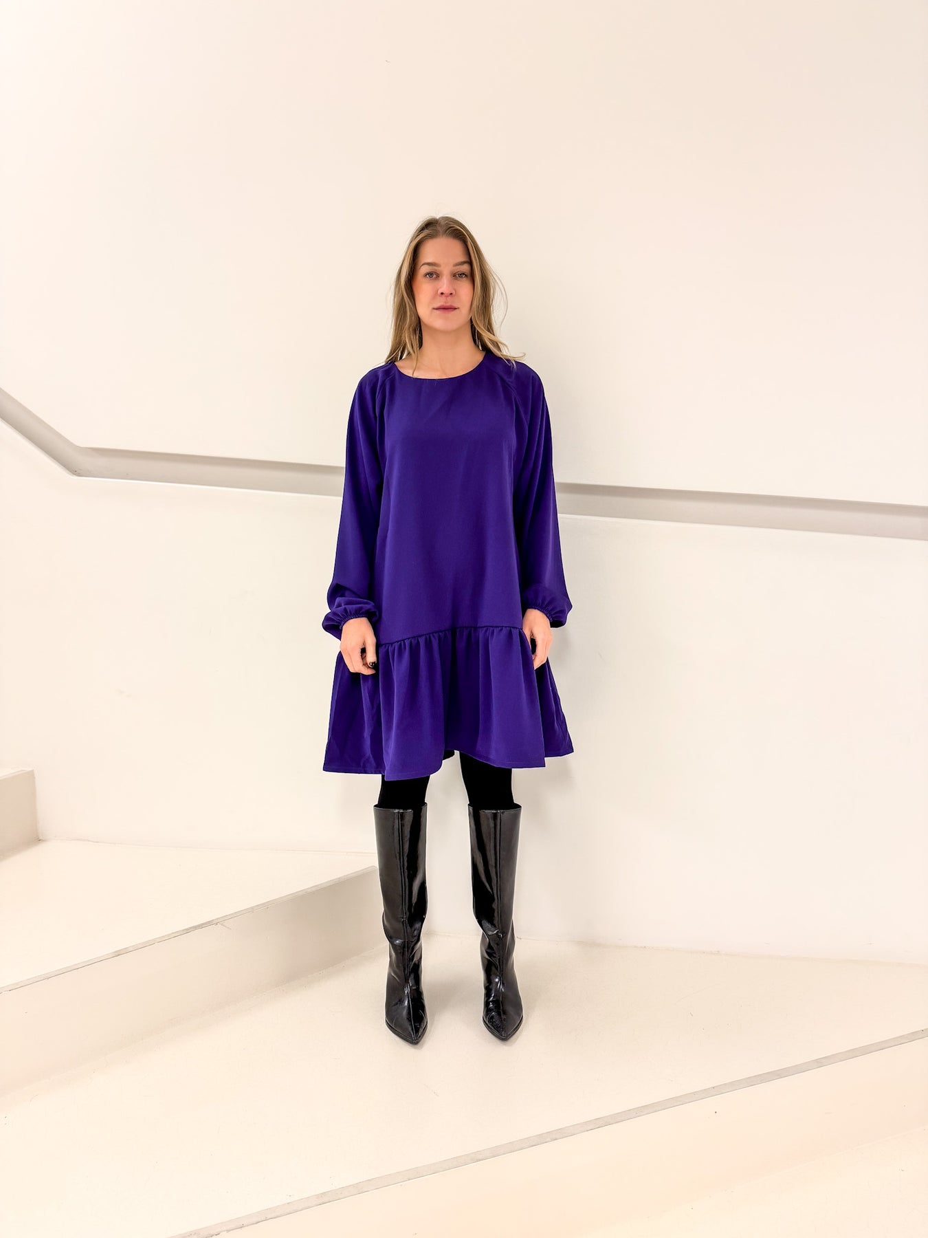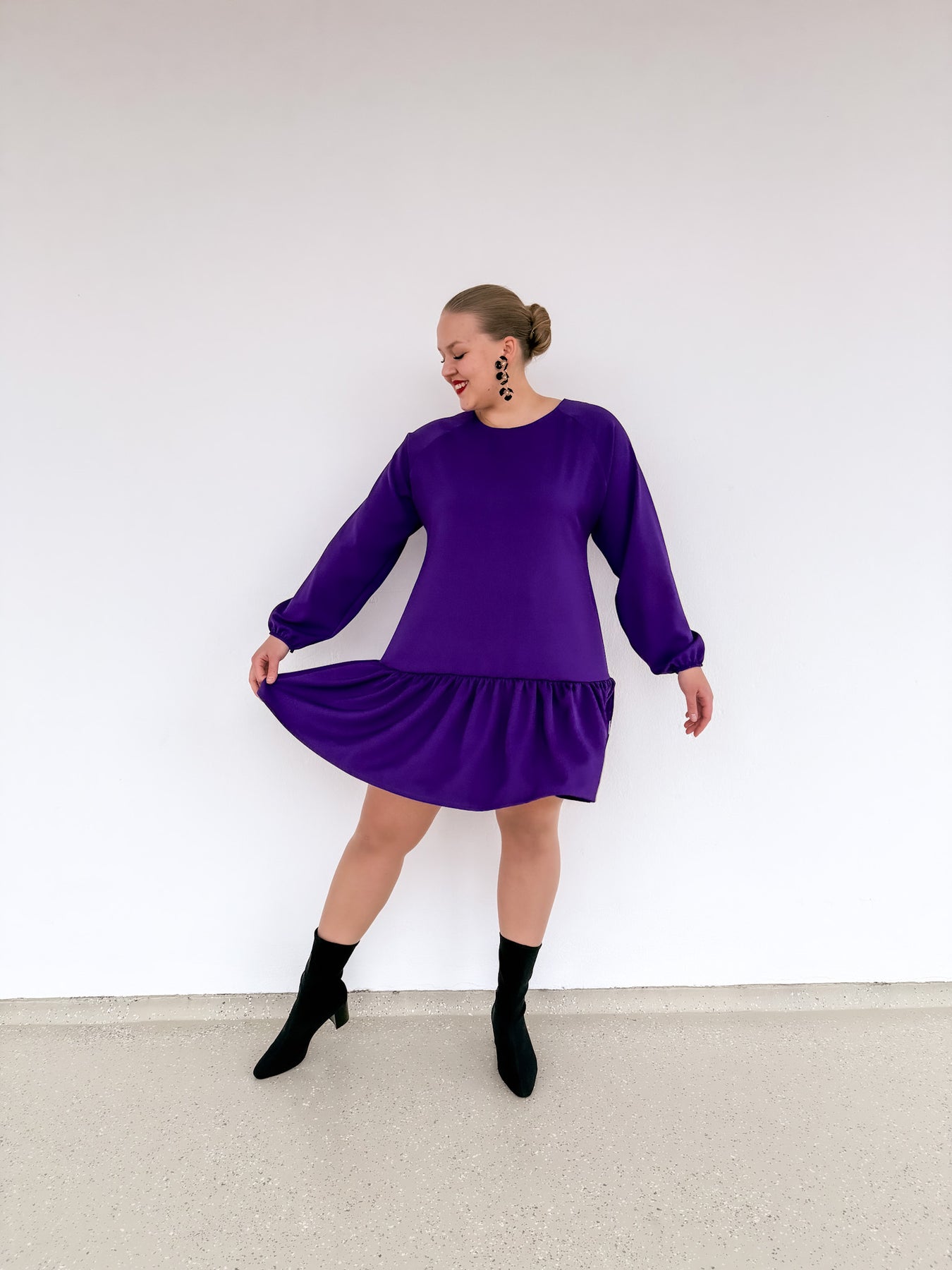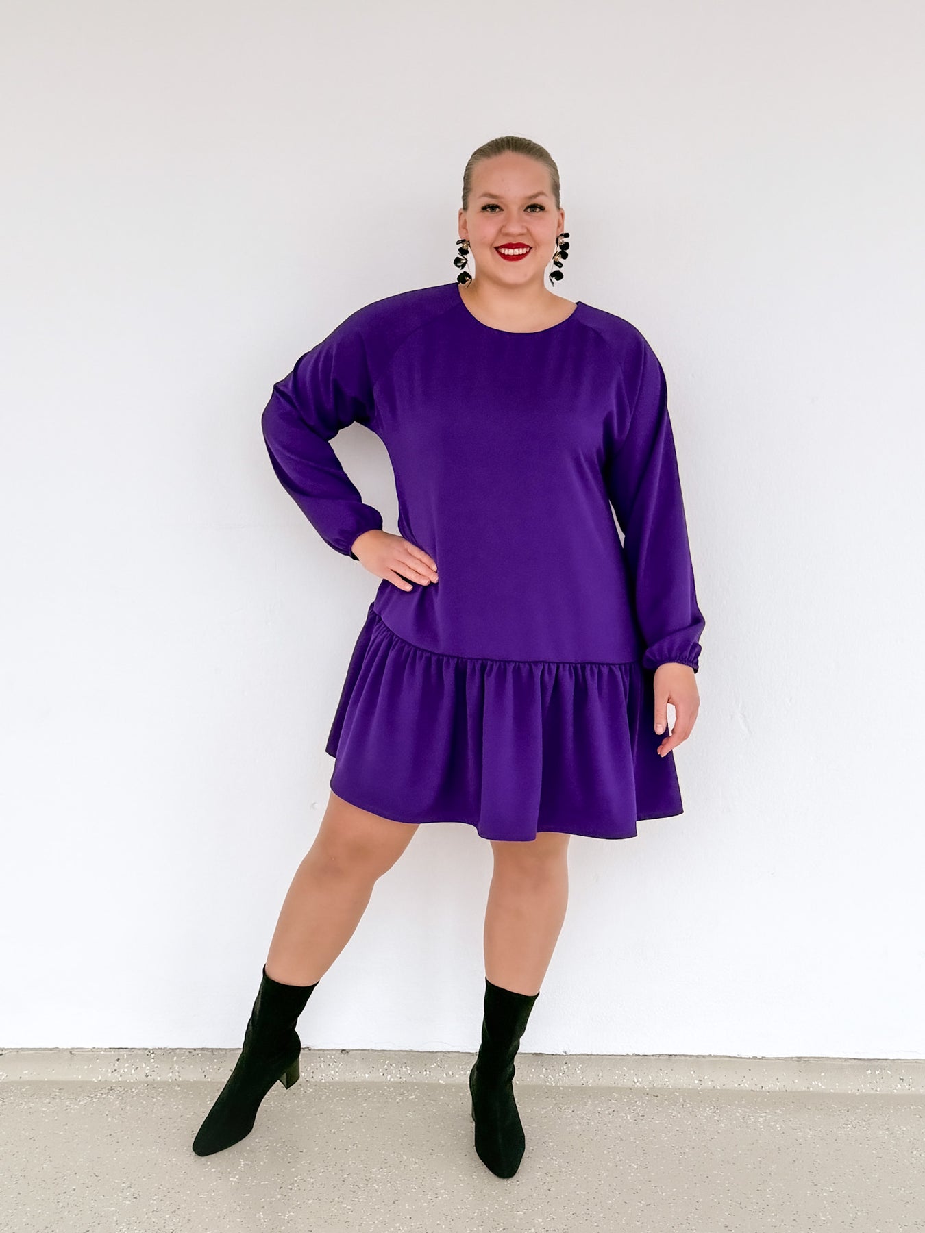 Tyylikäs, mukava ja monikäyttöinen violetin värinen mekko kotimaiselta Viljava Designilta! Ellie mekko on suunniteltu ja valmistettu Suomessa.