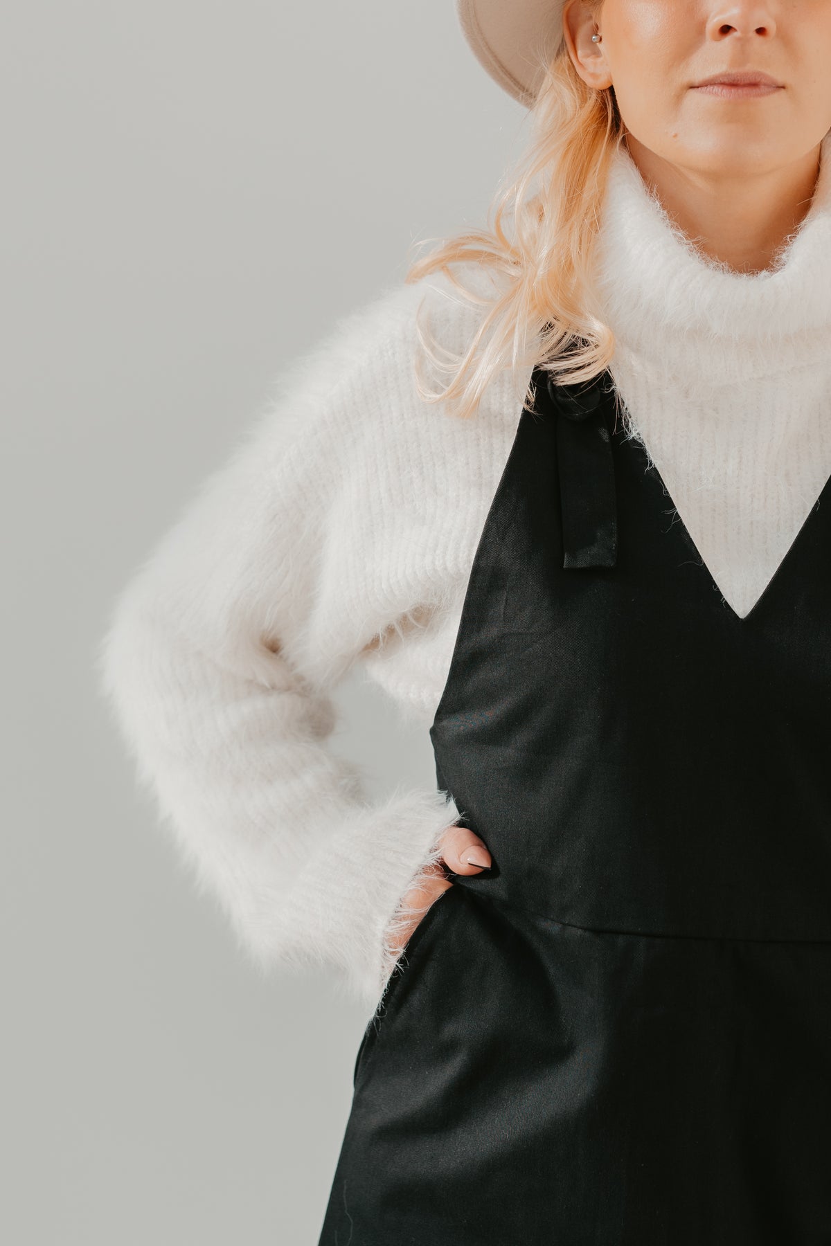 Haalarissa on imarteleva v-kaula ja säädettävät olkahihnat. Haalarin voi säätää helposti itselleen sopivaksi solmimalla olkahihnat oikealle pituudelle.