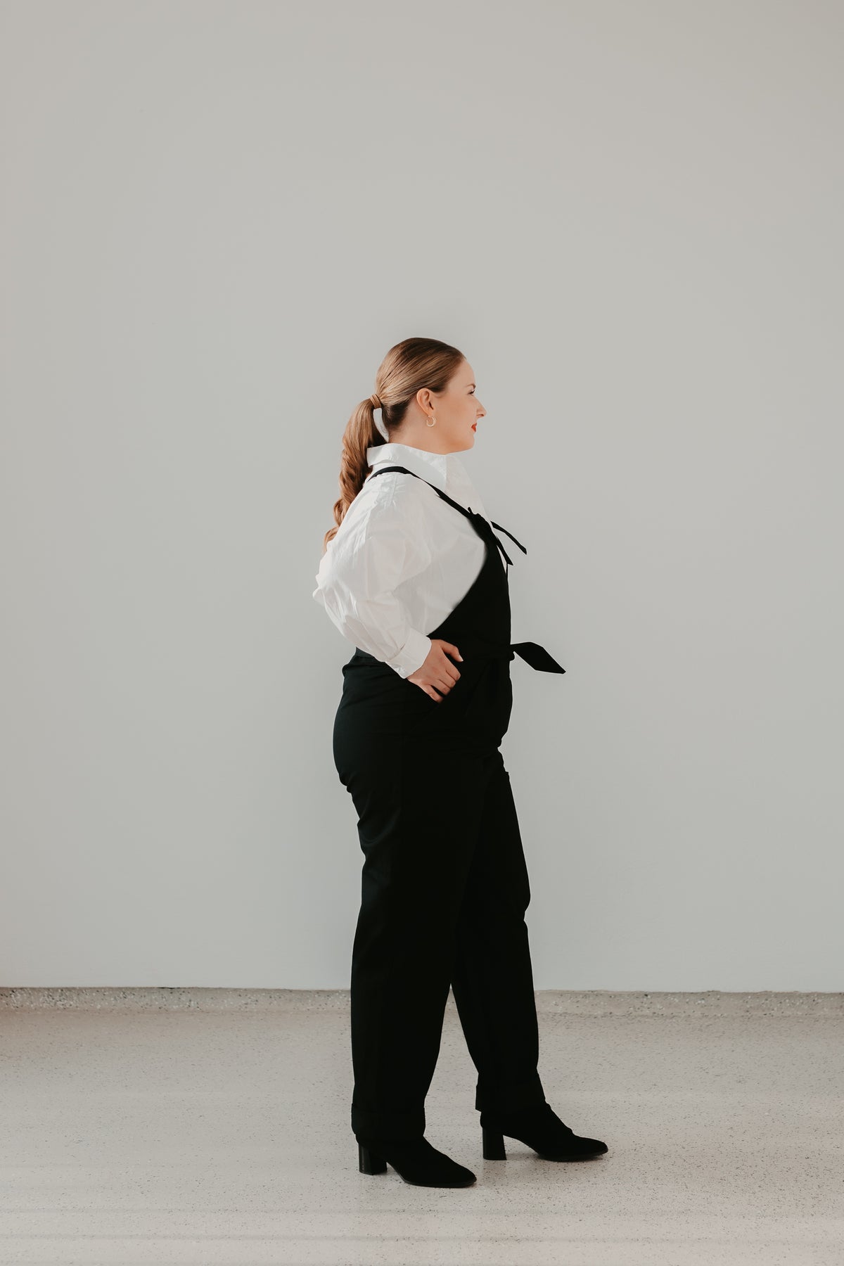 Haalarissa on väljä mitoitus, joten se menee myös odotusaikana. Oli sitten arki tai juhla, haalari on oiva valinta.
