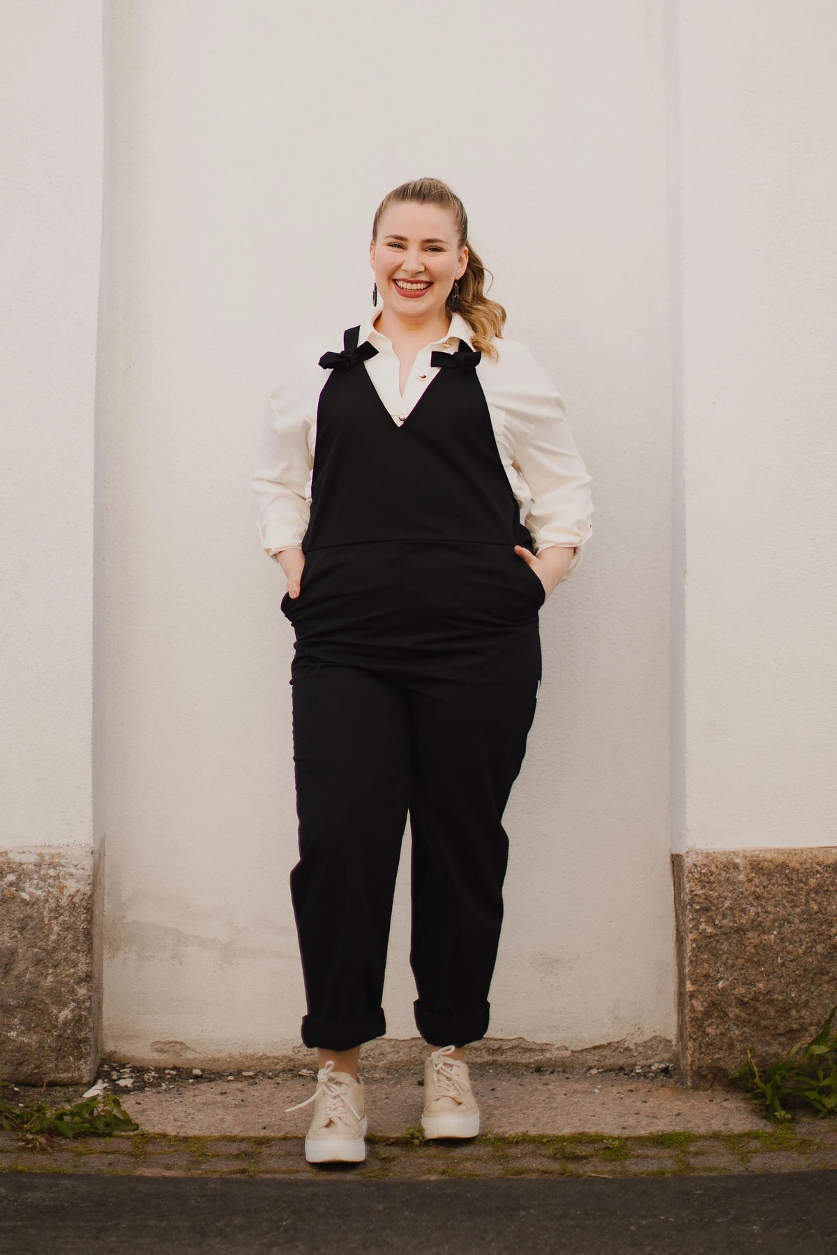 Lempi-haalari on nimensä veroinen, sitä voi käyttää missä vain ja sen kanssa sopii erilaiset topit, paidat, neuleista kauluspaitoihin. Haalaria voi käyttää myös hellepukeutumiseen jättämällä aluspaidan kokonaan pois ja käärimällä lahkeita lyhyemmäksi.
